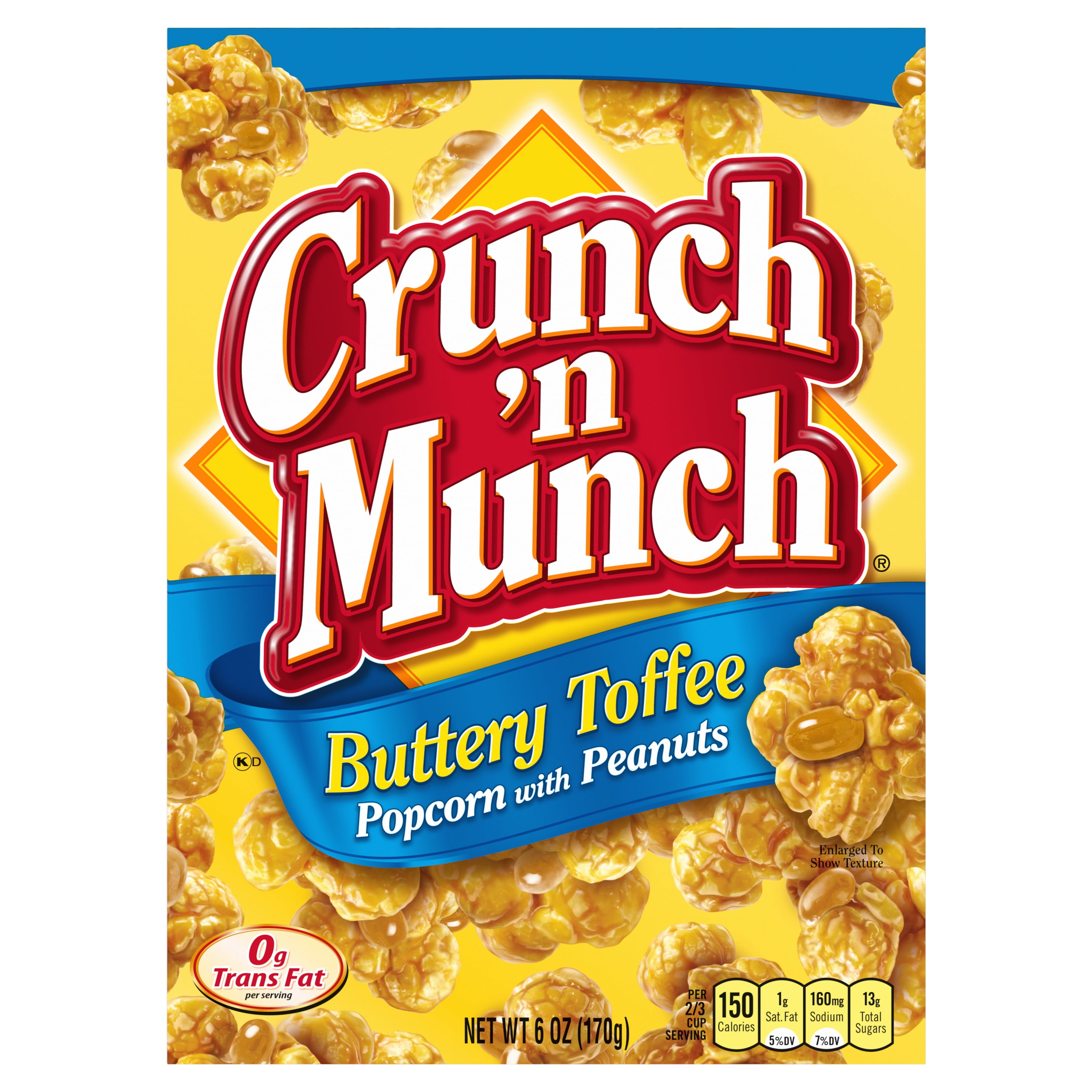 - Includes one 6-ounce box of CRUNCH ‘N MUNCH Buttery Toffee Popcorn with Peanuts