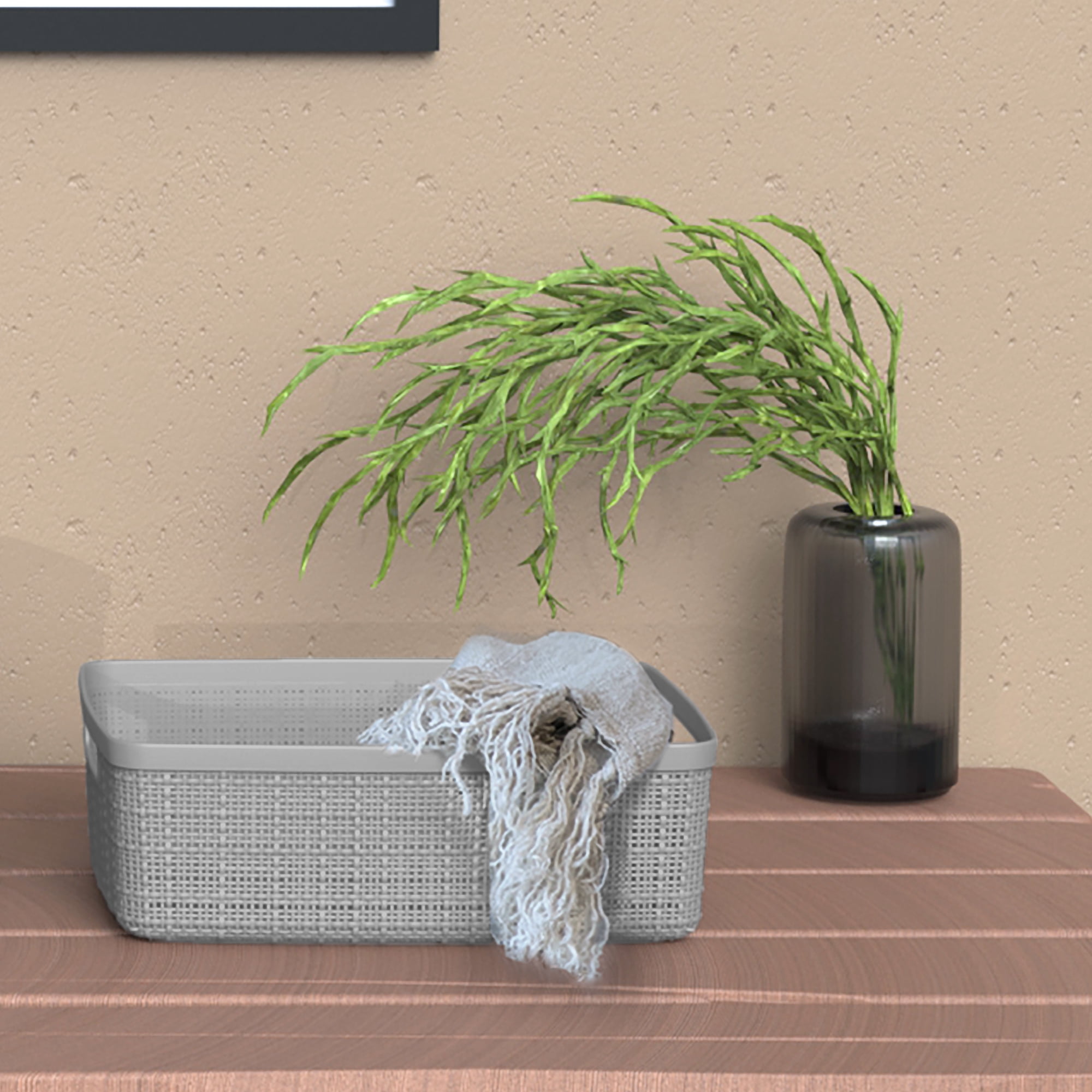 Curver Jute Medium Basket, Resin Plastic Storage Bin, Cool Grey Features: