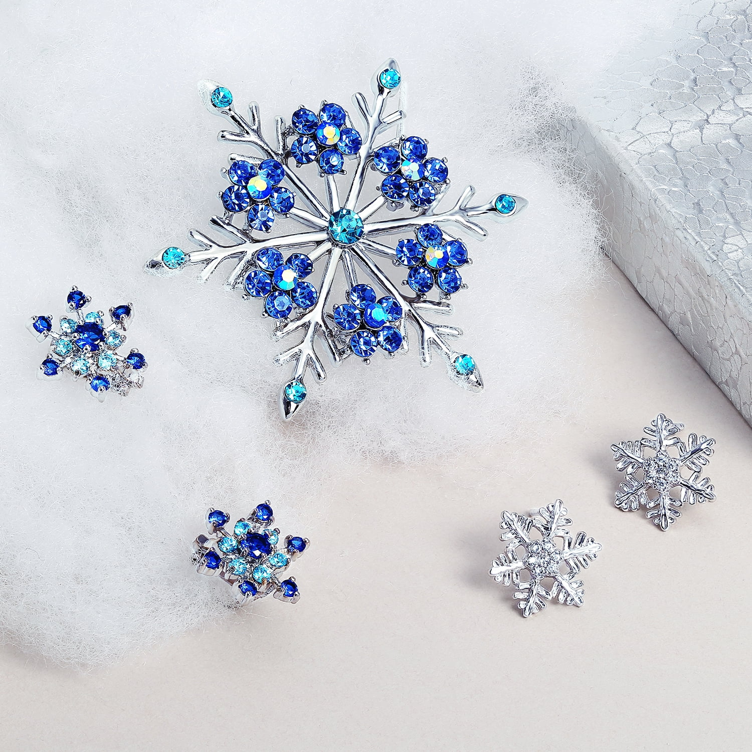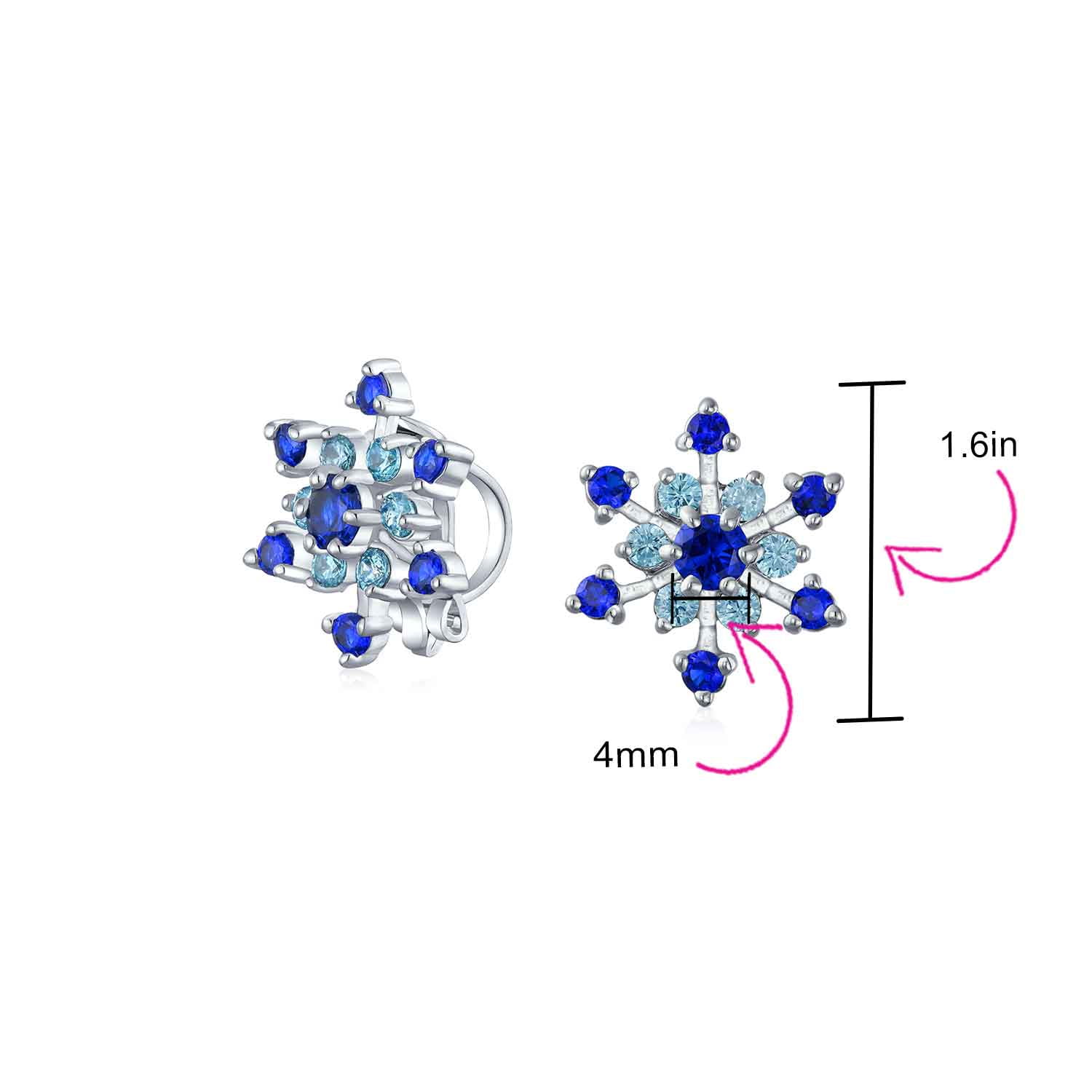 - Brighten up the winter season with these delightful brass, clip on earrings for non pierced ears. Highlighted by a cut out snowflake motif with radiant simulated sapphire and simulated blue topaz cz’s. Charming for a December or September birthday.