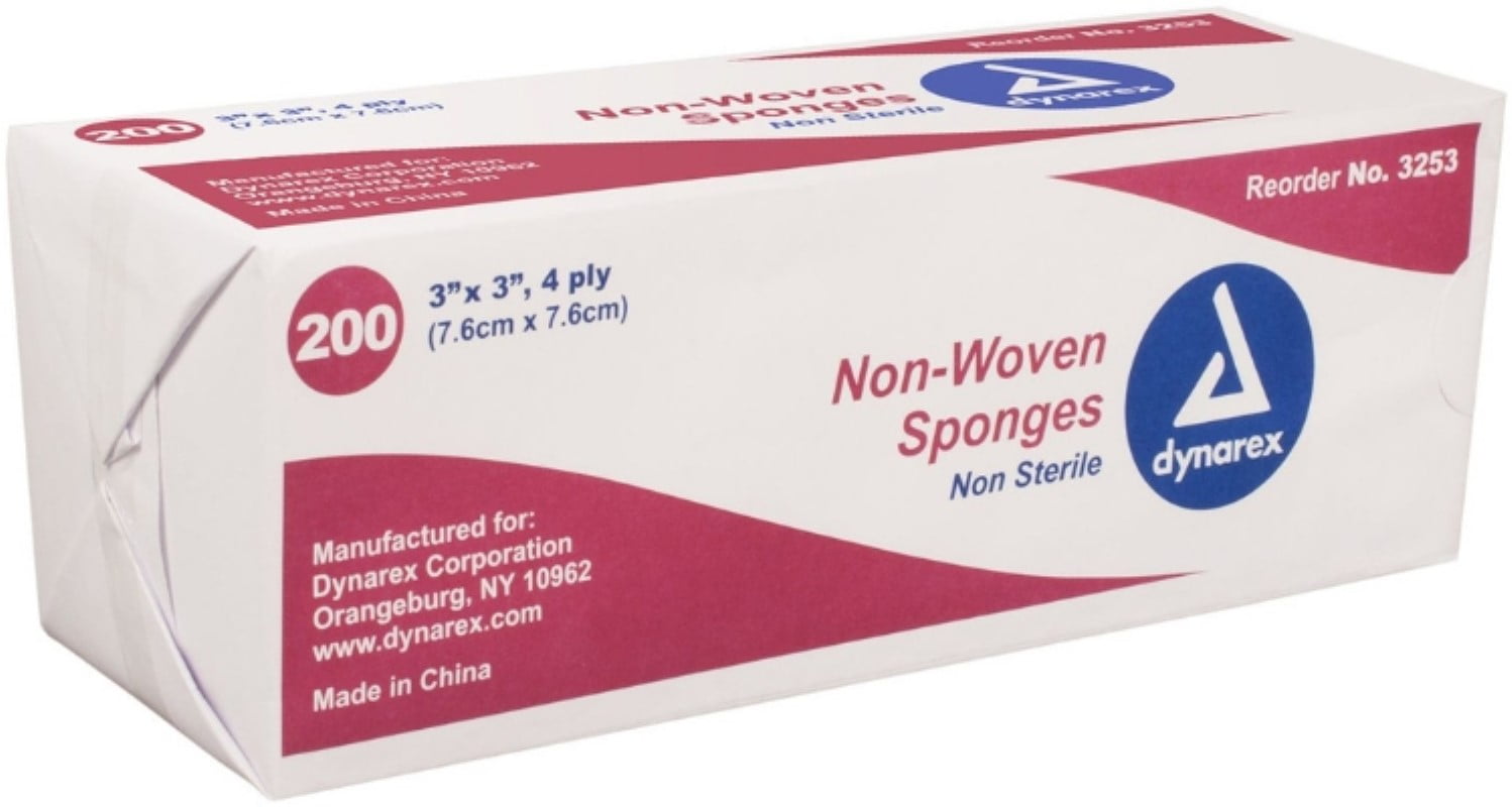 -Ideal for wound dressing prepping and scrubbing-Less linting than standard gauze-Highly absorbent and economicalDynarex Non-Woven Sponge Non-Sterile 3" x 3" 4 Ply (200/Pack)