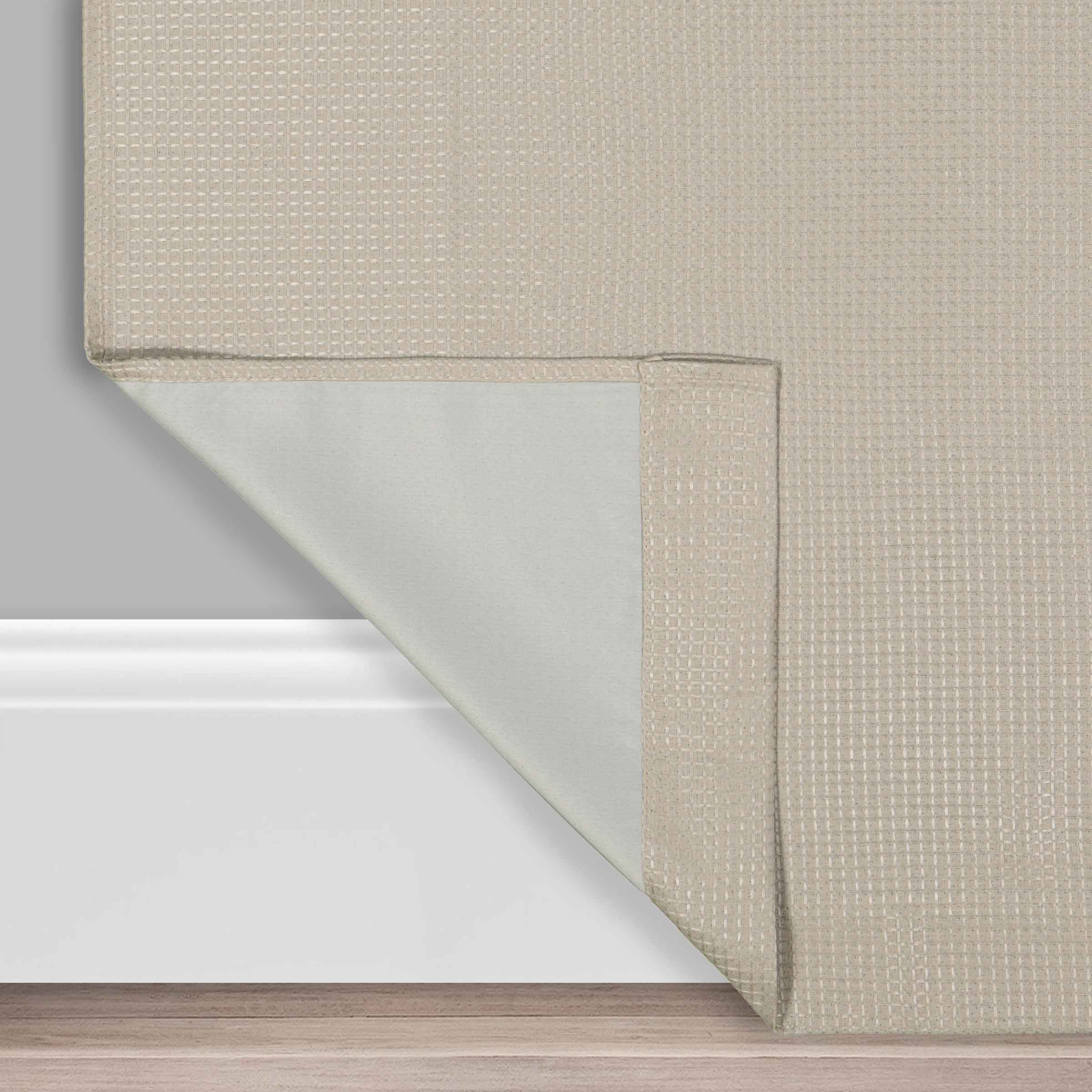 Find the perfect combination of fashion and function with Eclipse Blackout Reagan window curtain panel. Eclipse offers a complete line of transitional and functional curtains that provide privacy, manage light, reduce noise, and help with energy savings, without sacrificing the latest looks in window fashion. These beautiful panels offer blackout benefits and feature a textured, tonal solid fabric with an allover subtle square design. Blackout yarns are intricately woven into the panel giving it a rich hand and luxurious drapability. Each panel measures 38 inches wide in your choice of 63, 84, 95, 108 inches long. 1.65-inch oil-rubbed bronze grommets are recommended with a 1-inch rod for maximum movement. Curtain rod sold separately. 100% Polyester. Machine washable.