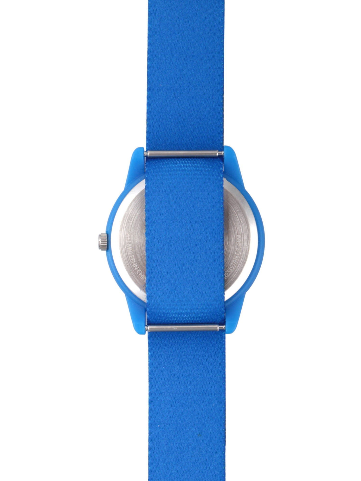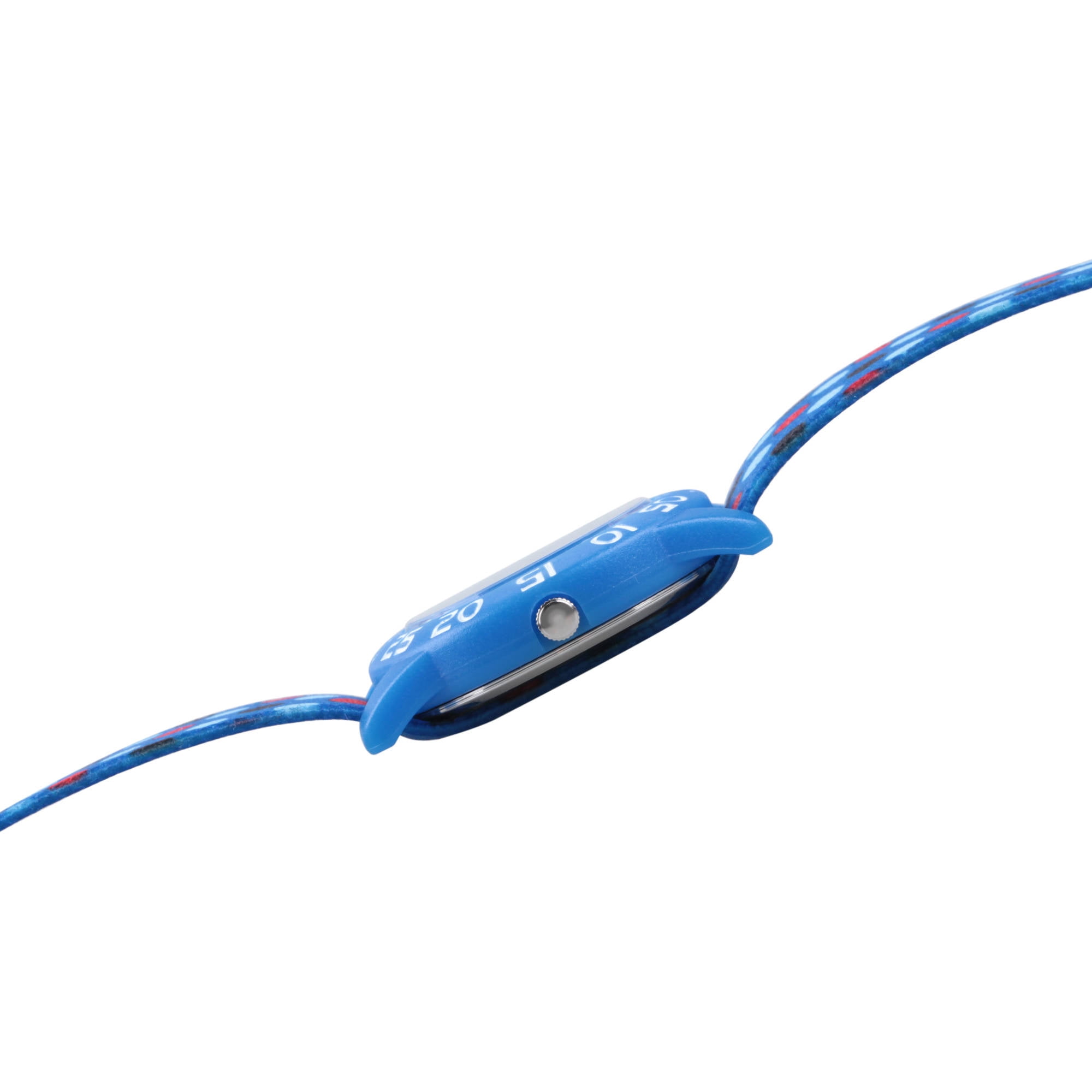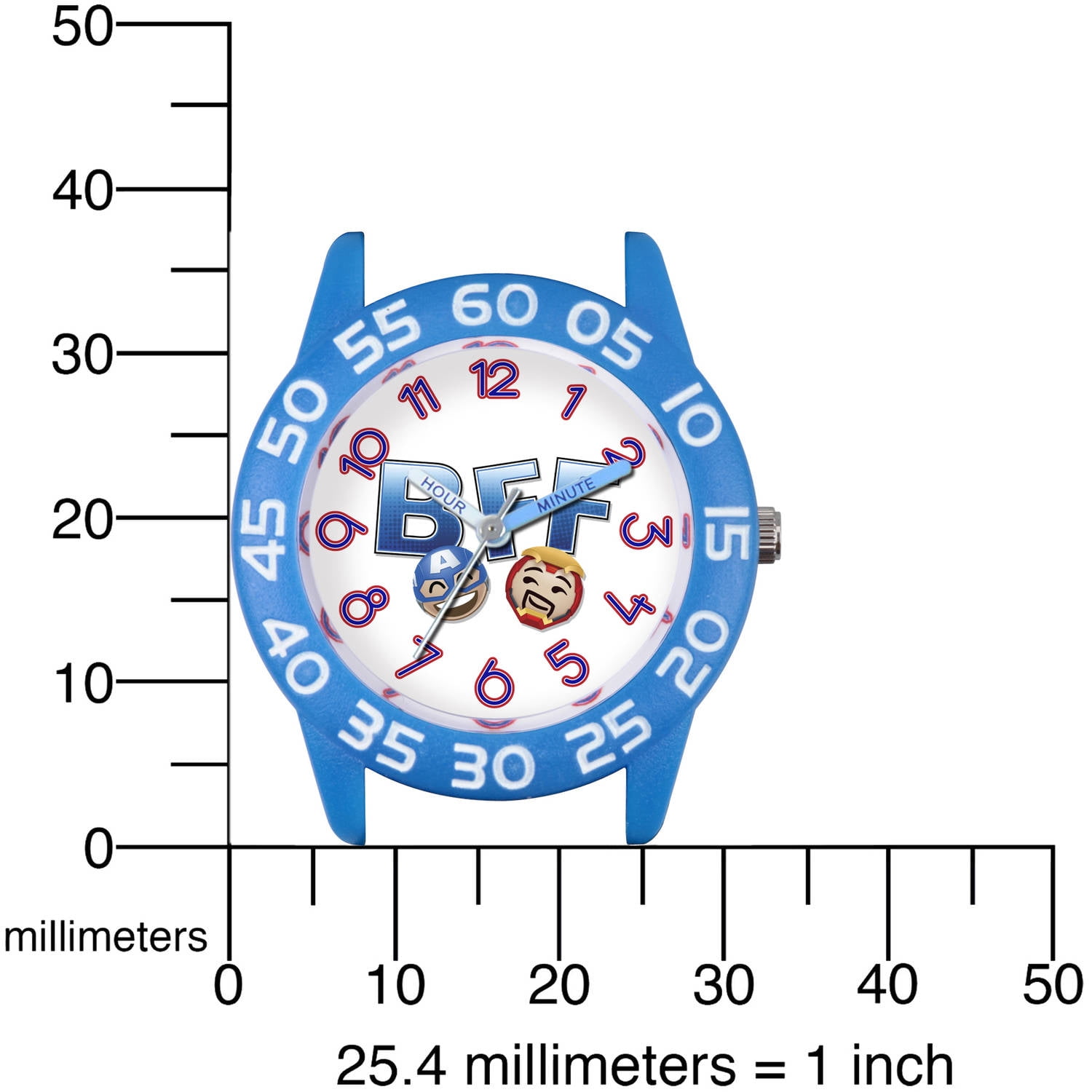 Marvel Emoji Kids’ Iron Man and Captain America Blue Plastic Time Teacher Watch, Blue Nylon Strap with Polka Dot Printing: