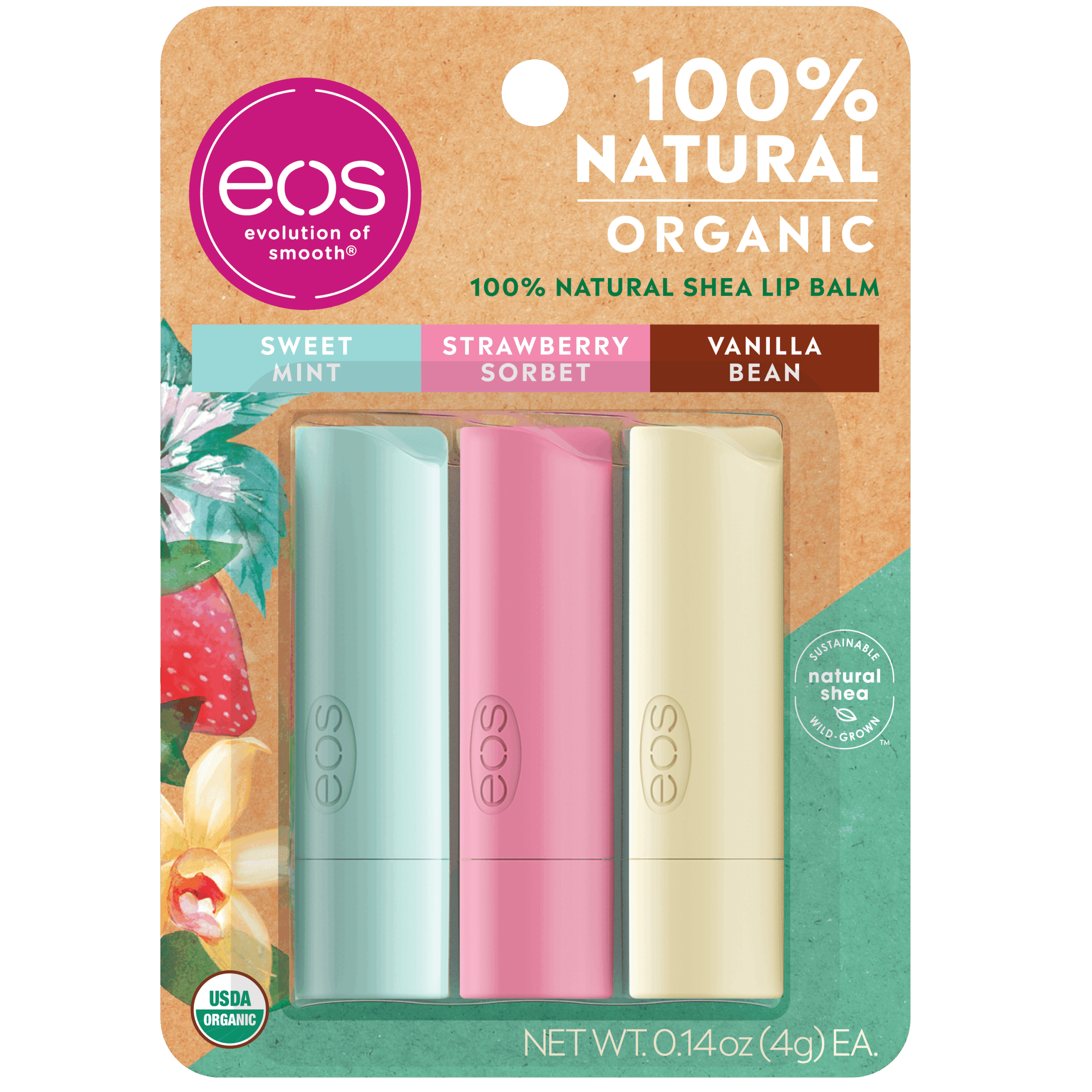 eos 100% Natural & Organic Lip Balm 3-Pack Stick – Lip Moisturizer Variety Pack