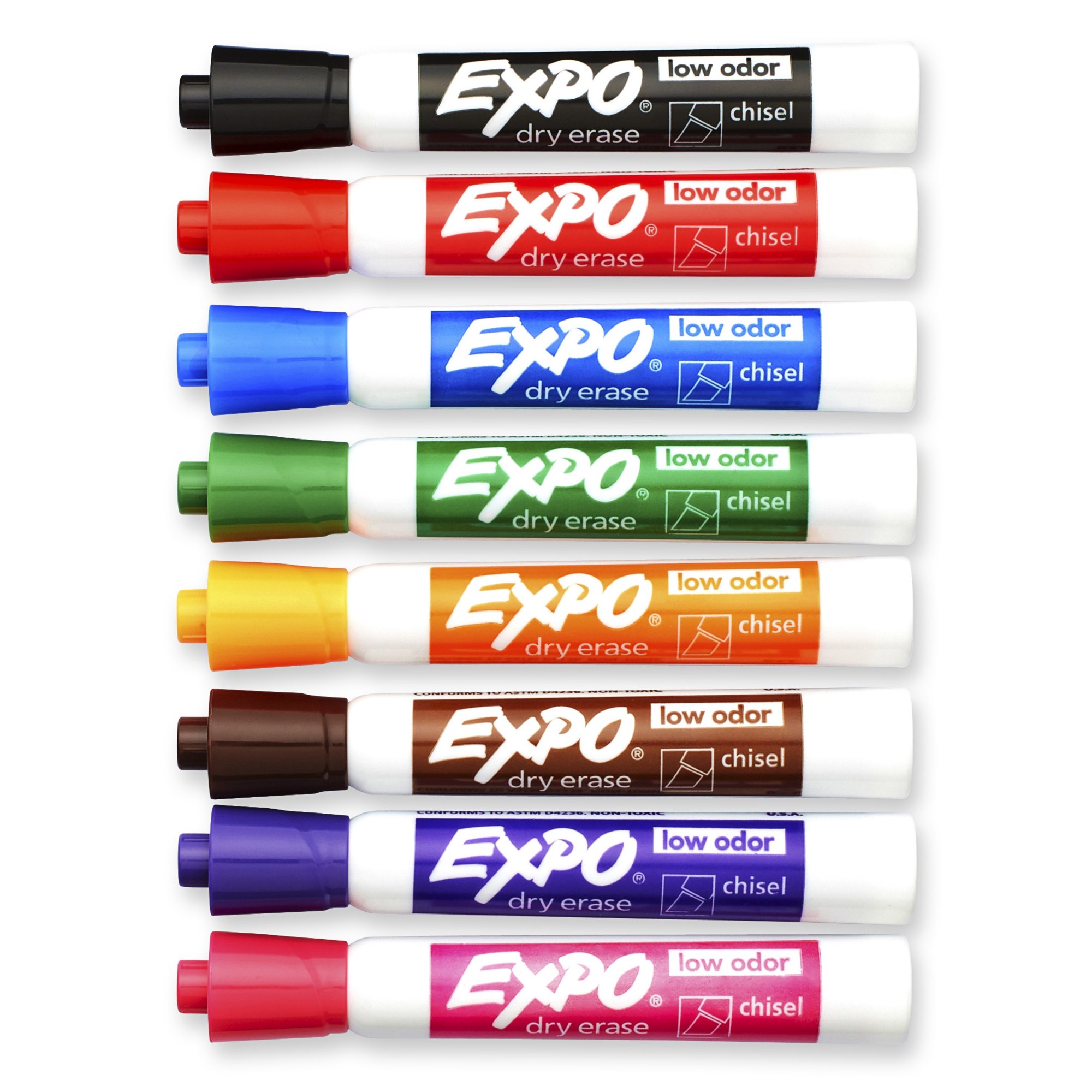 Perfect for schools and small offices Smooth-flowing marker delivers crisp, consistent lines.EXPO Low Odor Dry Erase Markers use a specially formulated, alcohol-based ink with virtually no odor. The versatile chisel tip markers feature vivid ink that is quick-drying and easy to see from a distance. These whiteboard markers write on whiteboards and most non-porous surfaces
