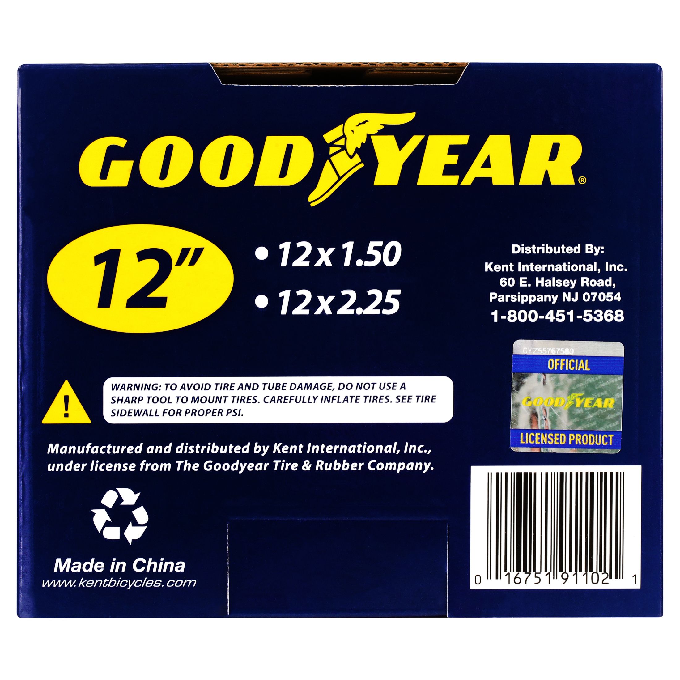The Goodyear 12" x 2.25" BMX Bike Tire is a black tire with mild knobs for on or off-raod use. This 12-inch black kid’s bike tire from Goodyear is for replacing worn or damaged tires on BMX style bikes. It is designed to fit a wheel width of 2.25 inches. Keep your bike running smoothly for the foreseeable future with this Goodyear 12" inch Bicycle Tire that will give you a smooth ride with plenty of traction. This Goodyear tire has a flexible bead for easier installation and it is equipped with supple sidewalls to provide a smoother ride. The rubber construction helps give it the durability it needs to last your child a long time on his or her bike.