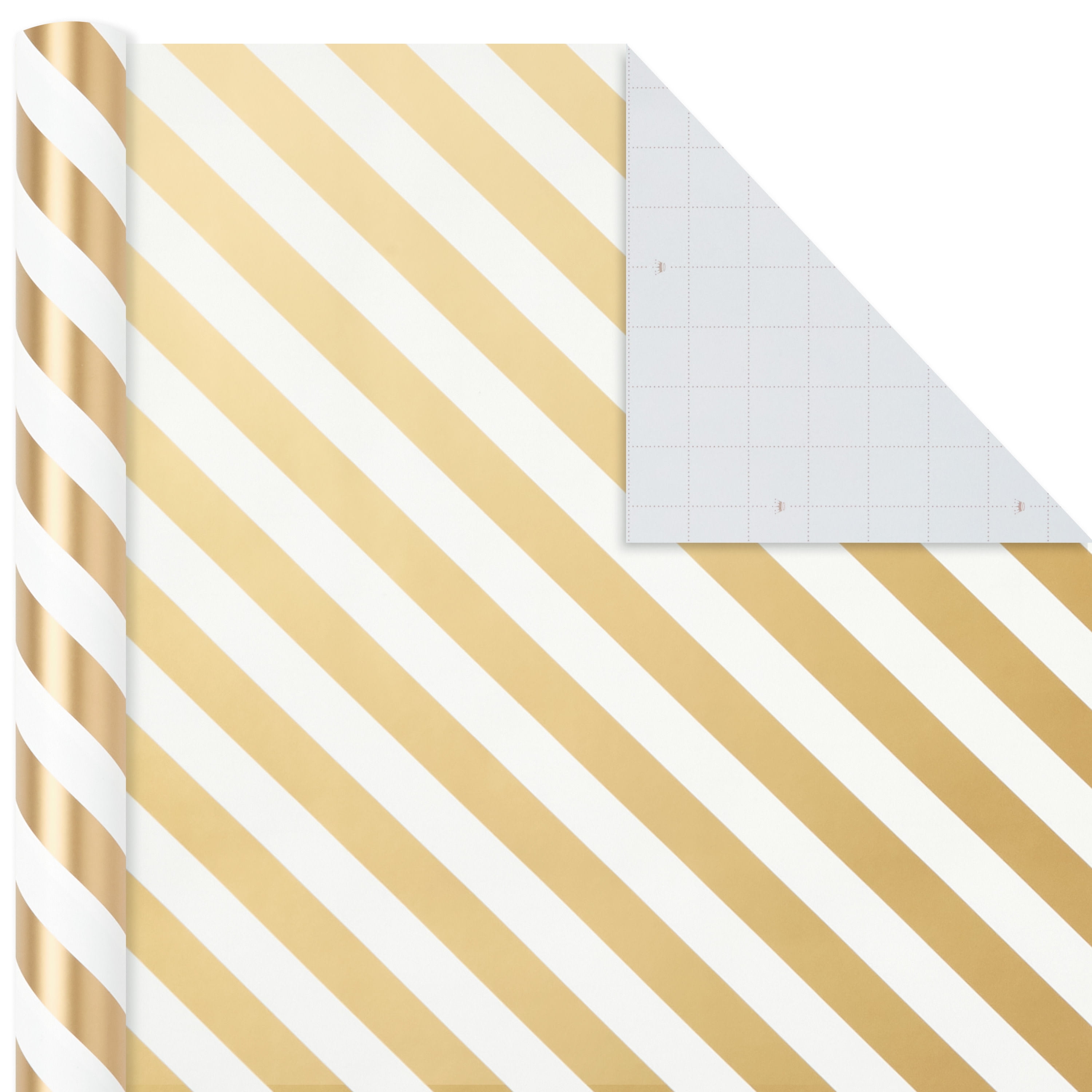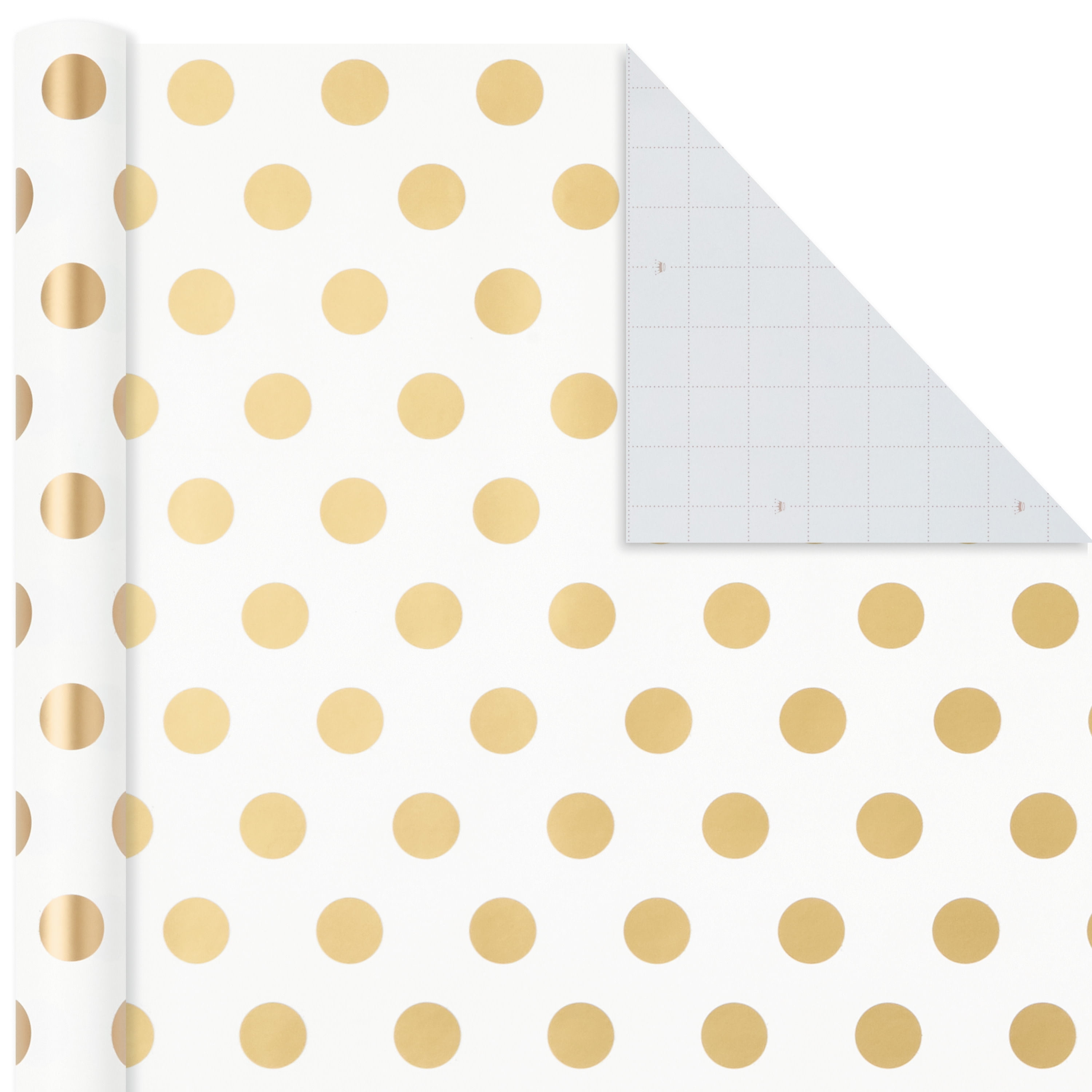 Be ready for any gifting occasion with the Hallmark All Occasion Wrapping Paper Bundle. Perfect for birthdays, weddings, Valentine’s Day, and more, this 3-pack of premium wrapping paper features 3 elegant, metallic designs: white with gold polka dots, white and gold diagonal stripes, and white with small gold stars. Each roll in this 3-pack of premium wrapping paper measures 30 inches wide by 14 feet long for 35 square feet per roll, totaling 105 square feet total in the set. Classic, versatile designs easily elevate any gift, from birthday and graduation presents to wedding and bridesmaid’s gifts. Each roll of gift wrap features gridlines on the reverse side for straight cutting and perfectly wrapped presents. Be ready for any occasion with the Hallmark All Occasion Wrapping Paper Bundle.