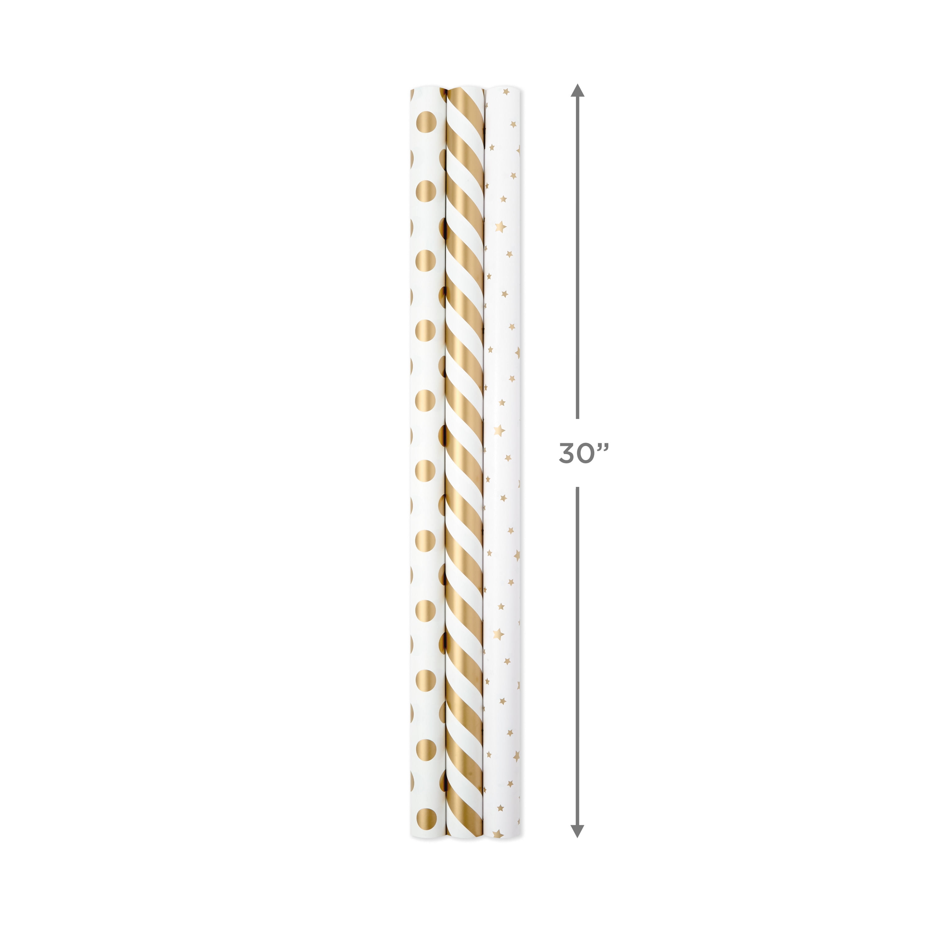 Hallmark All Occasion Wrapping Paper Bundle, White/Gold, 3 Rolls: