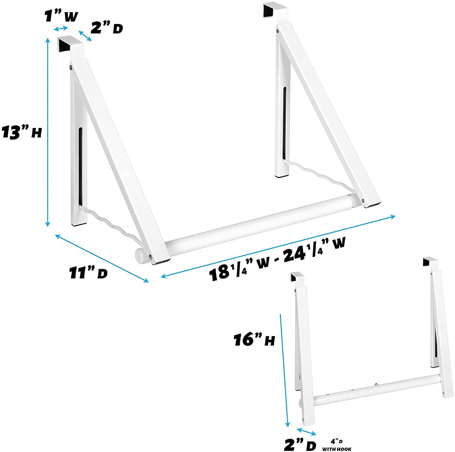 Our over-the-door drying rack is wonderfully versatile. It frees up floor space in your closet and can hold items such as clothing, towels, denim jeans, heavy winter coats, sports gear, and more. You’ll never have to worry about where to put your things again!