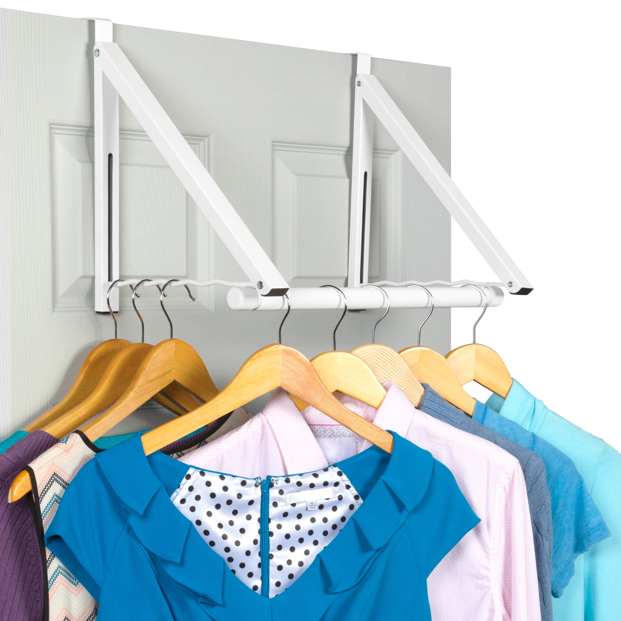 Install our over-the-door clothes hanging rack in your bedroom, bathroom, or any other room where extra storage is needed. It’s perfect for drying clothes on laundry day or hanging shirts after ironing them.