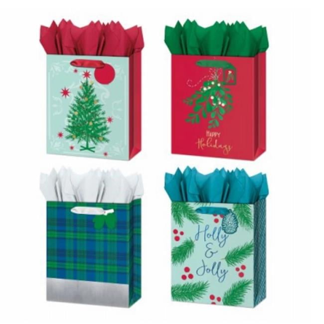 Deluxe 72 Piece Christmas Holiday Gift Bag Set,12 Assorted Bags with 60 Sheets of Tissue