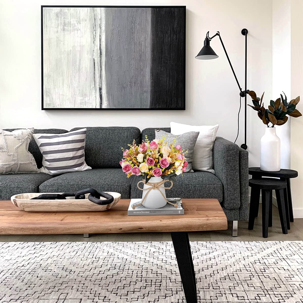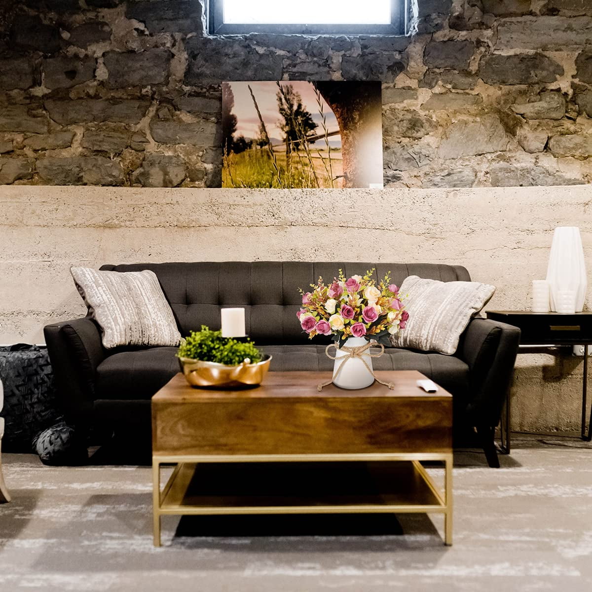 About this item SIZE: Each large flower is about 2.4 inches in diameter. The small one is 1.5 inch in diameter, Product diameter 12 inches, Height 14.5 inches (from the top of the plant to the bottom of the pot). PACKAGE: 5 bouquets Silk Brown Rose flowers,1 high quality ceramic. ARRANGEMENT: It can be flexible DIY, arrange it by the picture or yourself. MATERIALS: artificial Flowers arrangements and leaves are made of silk. Wire wrapped with plastic is used for firmness and angle-adjustable in creating the stems, natural and real-like, environmental and safety. Best home decoration: add more color and beauty to the home or office. They are suitable for decorating your living room, dining table, office, wedding, hotel banquet, etc., and are ideal for home decoration.We is specialized in making various artificial flowers and planters decoration. Hope you enjoyed your shopping.