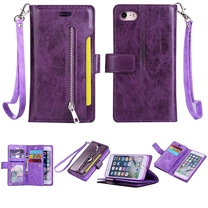 iPhone 8/ 7 Zipper Wallet Case, Allytech [Magnetic Closure] Multi-Functional Handbag Stand Function Folio PU Leather Flip Cover Inner Soft TPU Case for iPhone 8/ iPhone 7, Purple