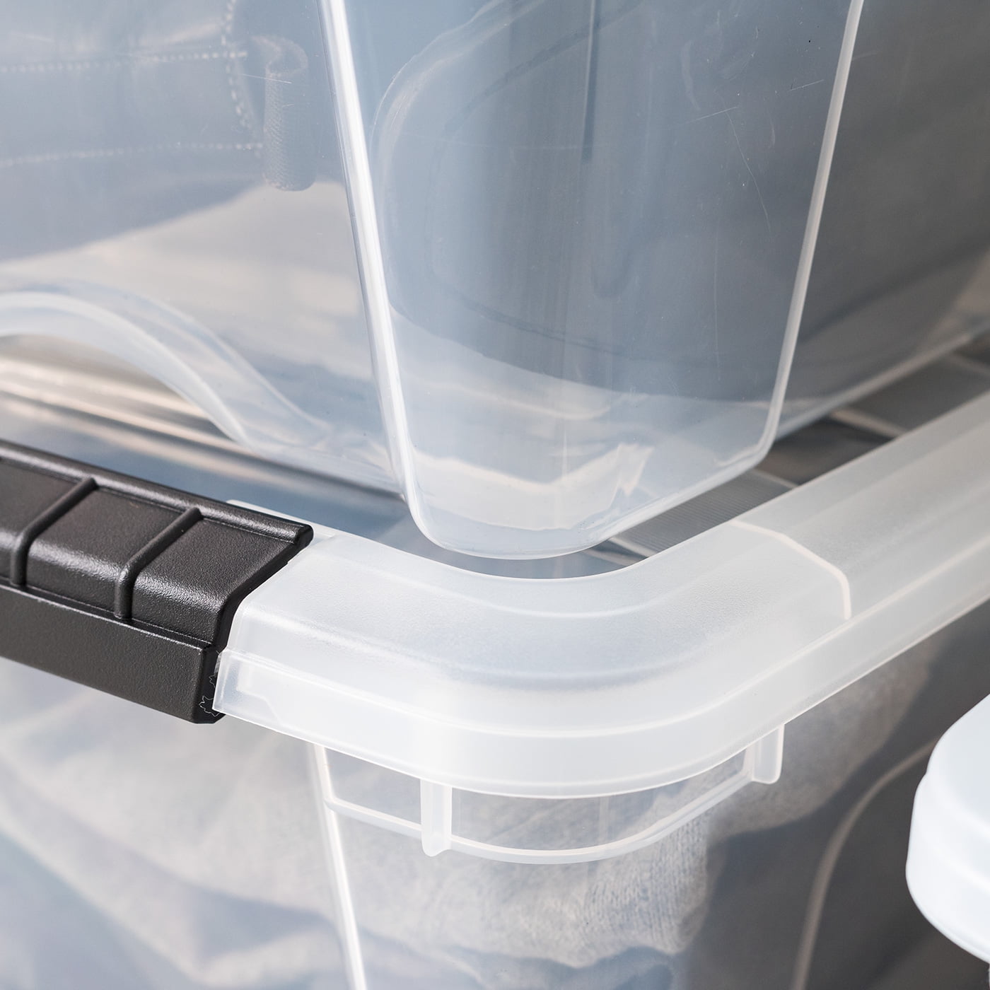 - Indented section on the bottom of the bin allows you to easily grab and pull the storage box from shelves