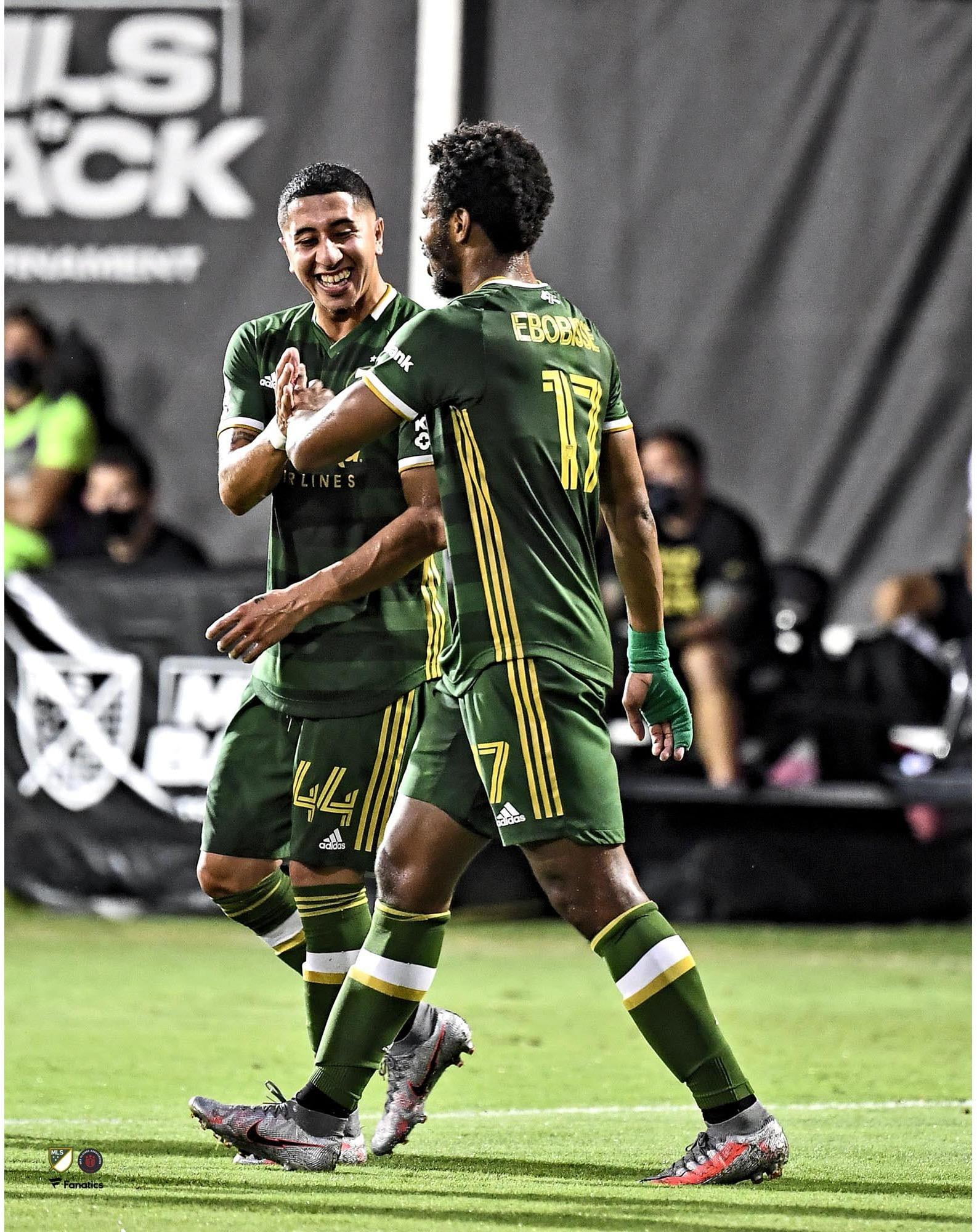 This original photograph captures Jeremy Ebobisse in action. It is officially licensed by Major League Soccer.Jeremy Ebobisse Portland Timbers Unsigned MLS is Back Semi-Final Header Goal Celebration Photograph