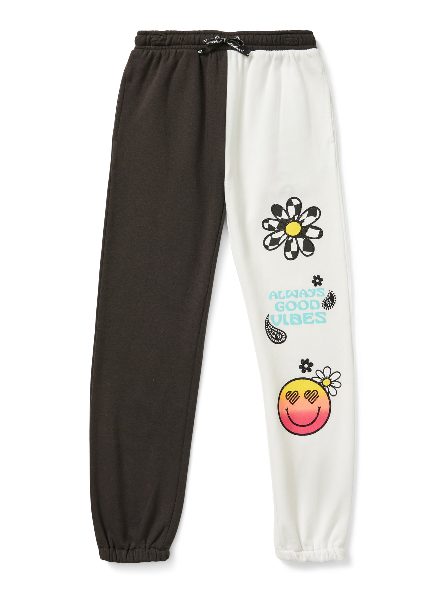 Your sporty fashionista will love the Justice Girls J-Sport Colorblock Jogger! This adorable jogger has a function drawcord and elastic waist for all-day comfort! With its positive messaging and split color fleece, this cozy jogger is sure to be an MVP in your girls’ back-to-school wardrobe! Pair it with the coordinating sweatshirt or her favorite Justice top for a look as unique as she is!