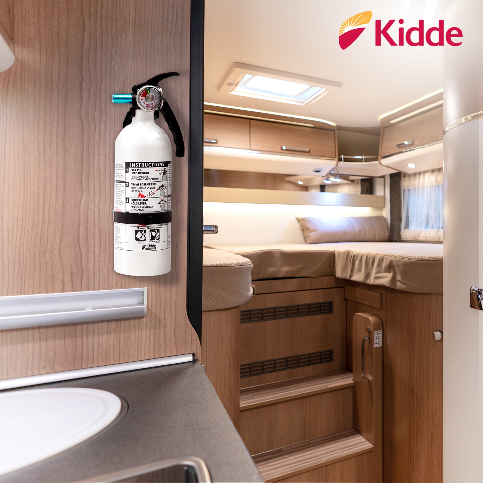 This Kidde 5BC Fire Extinguisher has an easy-to-read gauge that tells you it is charged and ready to use. It features an easy-to-pull safety pin and a rust- and impact-resistant nylon handle with clear instructions on the label with graphics to show steps required to operate it. This aluminum fire extinguisher is ideal to have, giving you peace of mind in case of an emergency.