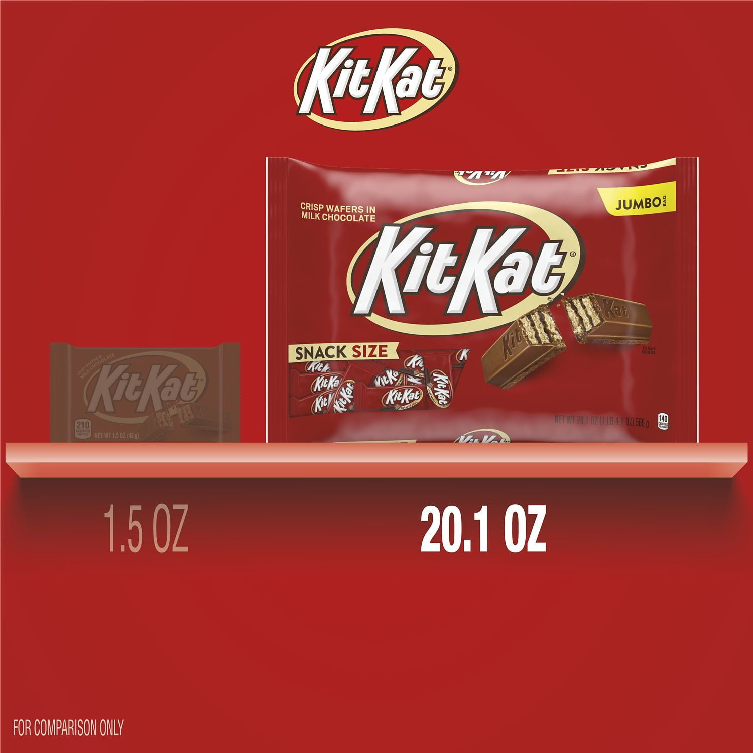 - Contains one (1) 20.1-ounce jumbo bag of KIT KAT® Milk Chocolate Snack Size Wafer Candy Bars