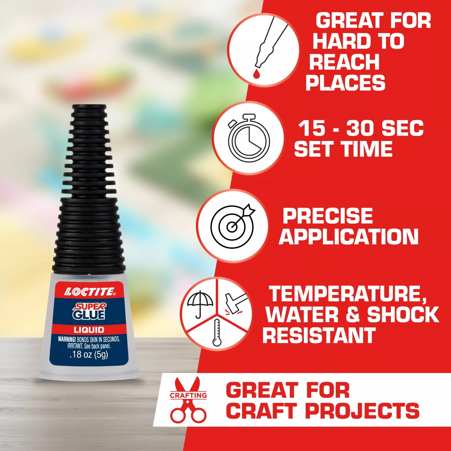Loctite Longneck Bottle Super Glue features an extra-long precision tip for controlled applicationon hard-to-reach surfaces. Loctite Longneck Bottle Super Glue dries transparent and sets inseconds for invisible detail work on your most intricate crafting projects. This “finger friendly”bottle ensures no mess and allows for a continuous flow or a precise drop of glue. It has aneasy-open cap with a metal pin that cleans and seals the nozzle for a clog-free performance.This ethyl cyanoacrylate super glue works quickly and effectively on a variety of commoncrafting materials including: leather, cork, paper, cardboard, wood, chipboard, fabric, metal,ceramic, rubber and hard plastics such as acrylic, polycarbonate, polystyrene, and PVC. Greatfor all sorts of creative projects, Loctite Super Glue can be used to assemble models andcollectibles, create costume jewelry, decorate household objects, and more. This unique liquidformula dries clear and colorless without clamping and resists moisture, most chemicals, andfreezing temperatures for outdoor crafts.