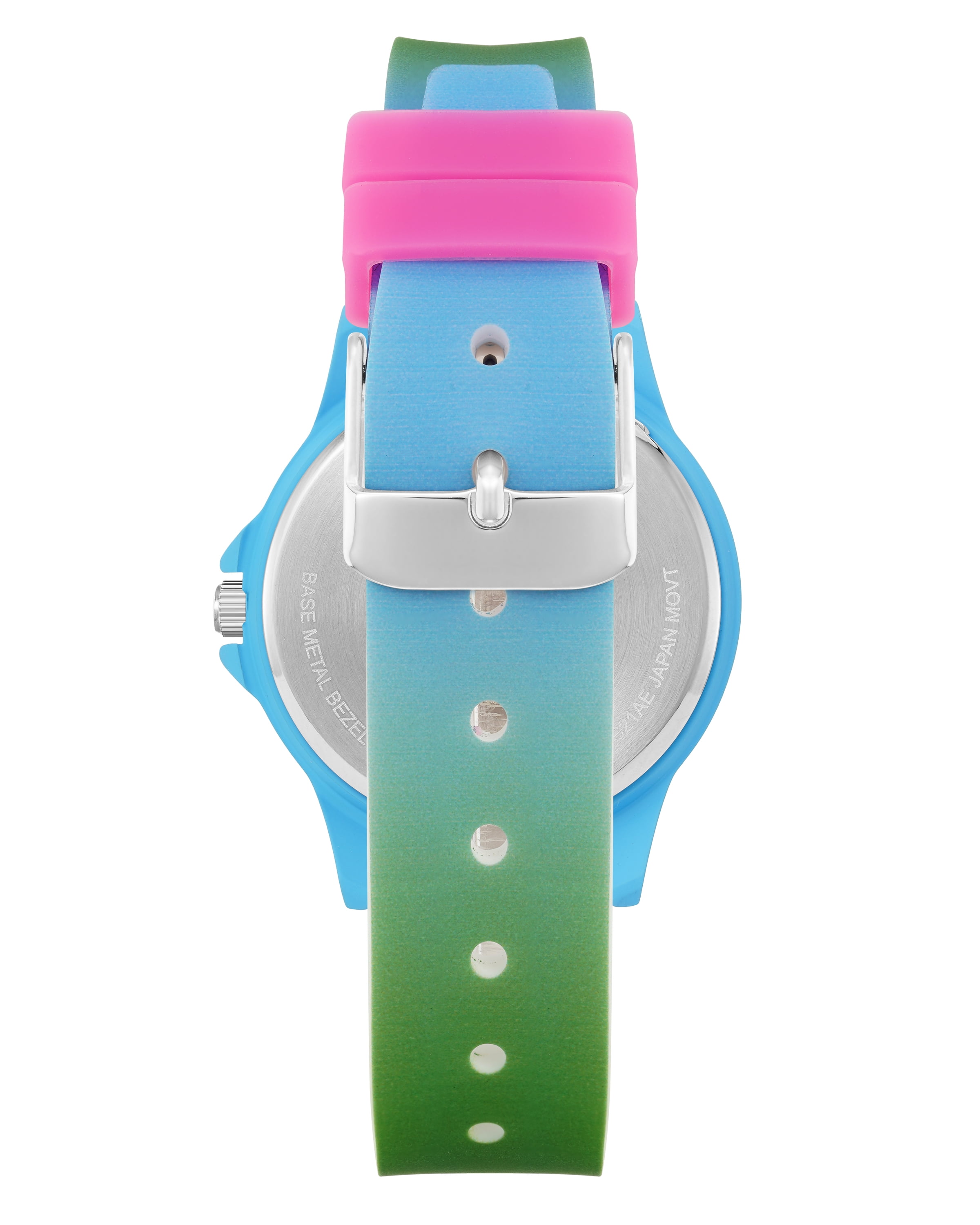 This bold turquoise watch from Madden NYC is a great streatwear-inspired addition to any wardrobe. The striking turquoise rubberized case and bracelet is paired with a silvery white dial and matching turquoise hands and markers.LIGHT BLUE RUBBERIZED CASE. SILVERY WHITE DIAL. LIGHT BLUE DIAL INDEXES HAND HANDS.