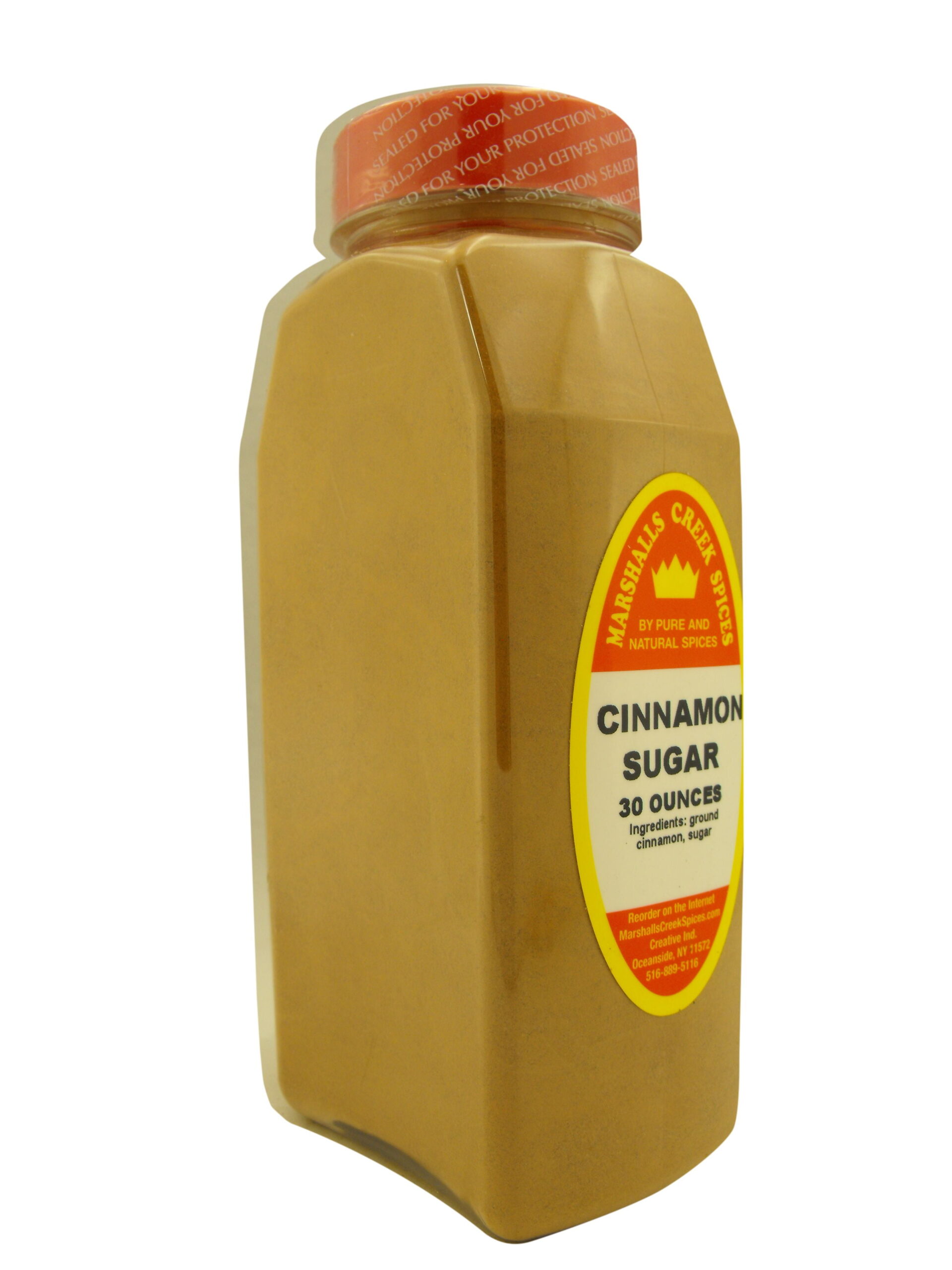 Marshalls Creek Spices buys in small quantities and packs weekly providing the freshest spices possible. Fresher spices means more flavor and a longer shelf life.30 ounce jar of Cinnamon Sugar Ingredients: ground cinnamon, sugar