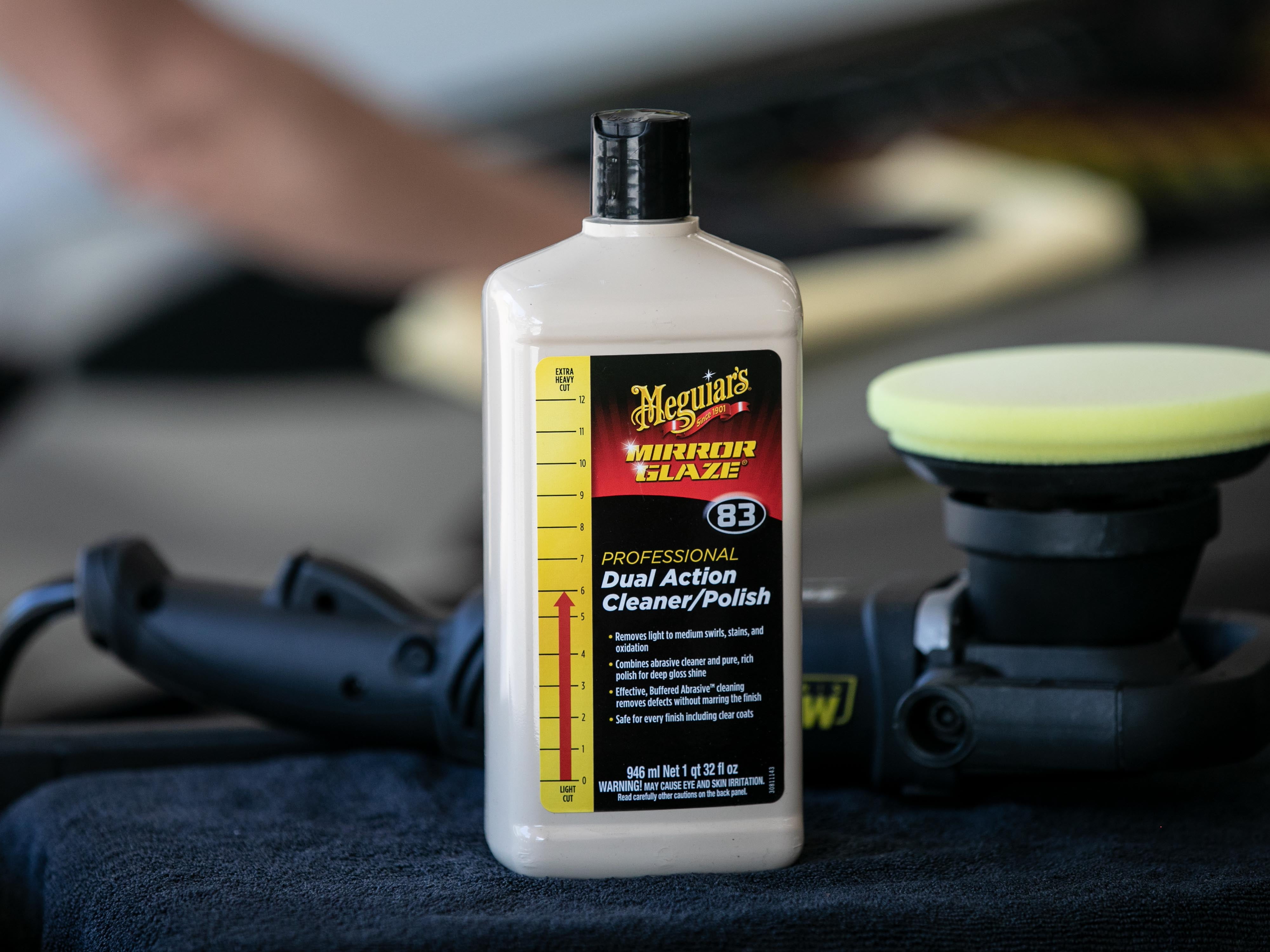 Meguiar’s M82 Mirror Glaze Swirl Free Polish is a specially blended cleaner polish that quickly eliminates light scratches and swirl marks. This high-performance paint polish applies smoothly and wipes off with ease, safely achieving light defect removal and restoring a glistening reflective shine to all glossy paints. Formulated for fresh paint, this professional grade polish is safe in a body shop environment. Can be applied by hand, rotary buffer or dual action polisher like Meguiar’s MT300 Professional DA Polisher.