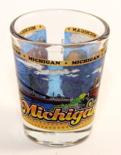 Here is a very rare and hard to find souvenir collectible wraparound shot glass from Michigan. It is a 5x6cm style shot glass measuring 2.25 inches tall and 1.8 inches in diameter.Souvenir from Michigan; Makes a great gift or a nice collector’s item, Measures 2.25 inches tall and 1.8 inches in diameter