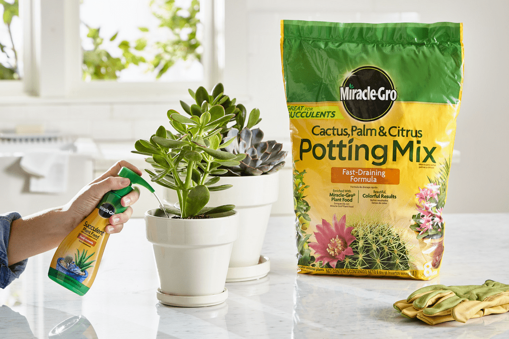 - Pamper your succulents with Miracle-Gro Cactus, Palm and Citrus Potting Mix and Miracle-Gro Succulent Plant Food