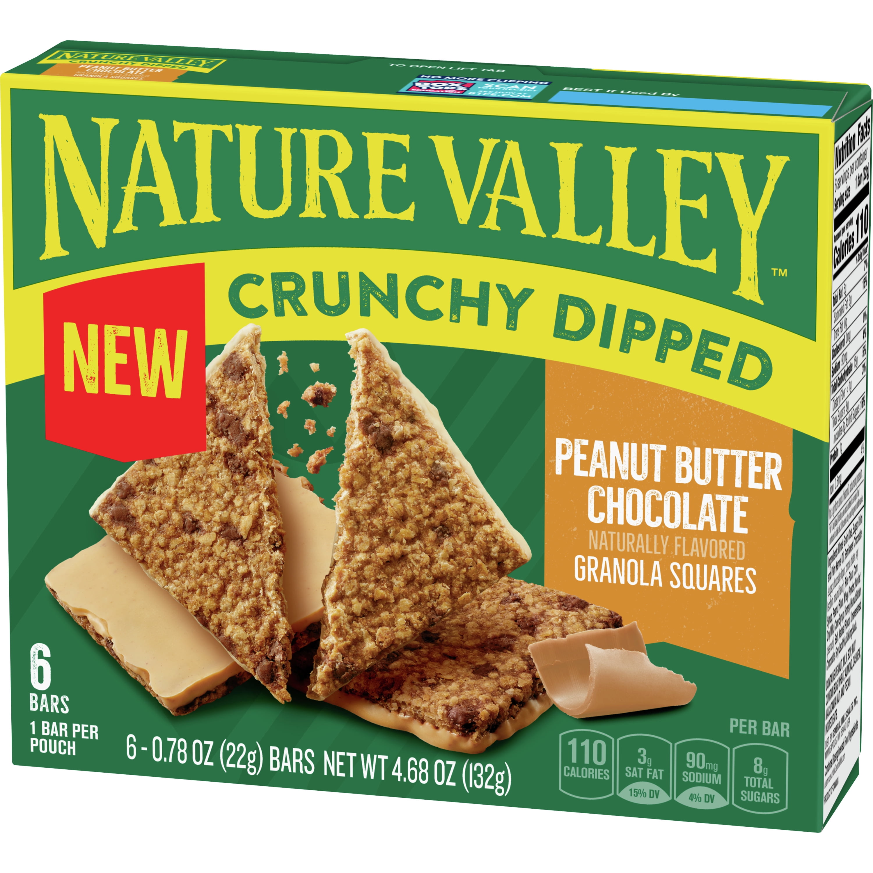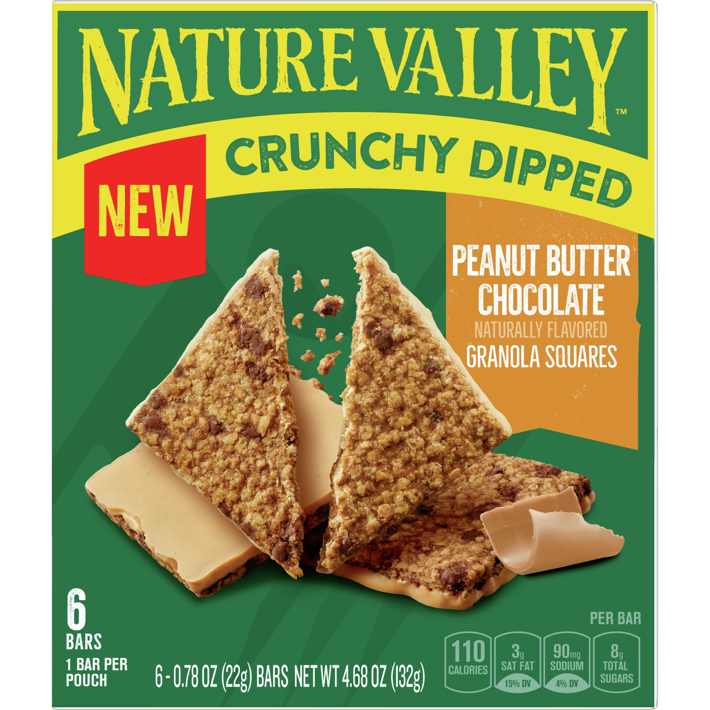 - CRUNCHY DIPPED GRANOLA BAR SQUARES: Nature Valley Crunchy Dipped Granola Squares are indulgent treats that deliver the satisfying crunch of delicious oats dipped in chocolate. A must-have for an on-the-go snack or in a lunch box.