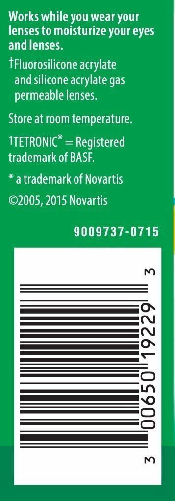 Moisturizes and refreshes lenses. For soft (hydrophilic) lenses, including silicone hydrogel and gas permeable* contact lenses. Works while you wear your lenses to moisturize your eyes and lenses. For greater wearing comfort. Helps remove particulate material that may cause minor irritation, discomfort, dryness, blurring and itchiness while wearing your lenses. Contains RLM-100, which helps prevent protein deposit build-up, when used as directed. *Fluorosilicone acrylate and silicone acrylate gas permeable lenses.