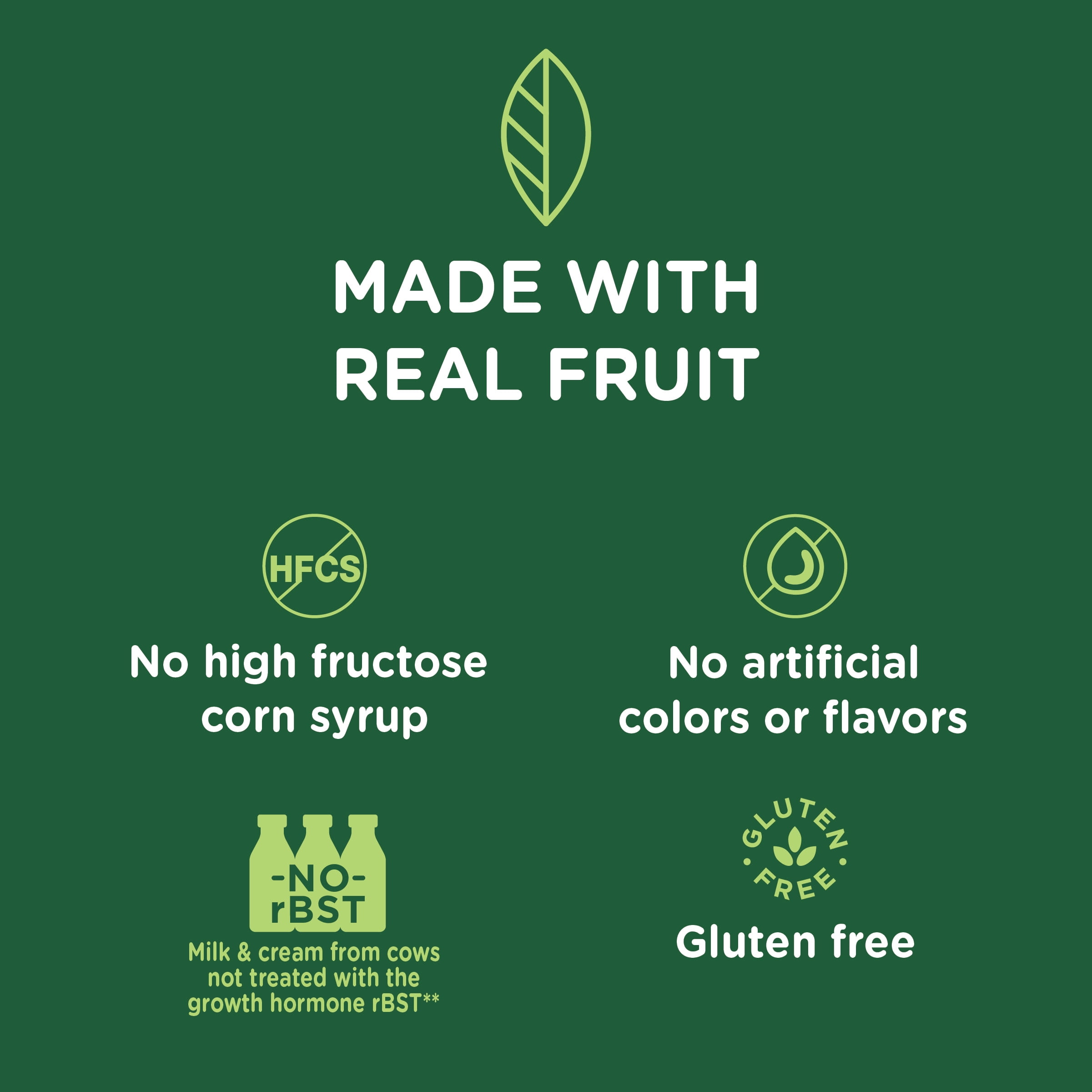 - Each frozen fruit bar is made with milk and cream from cows not treated with the growth hormone rBST*