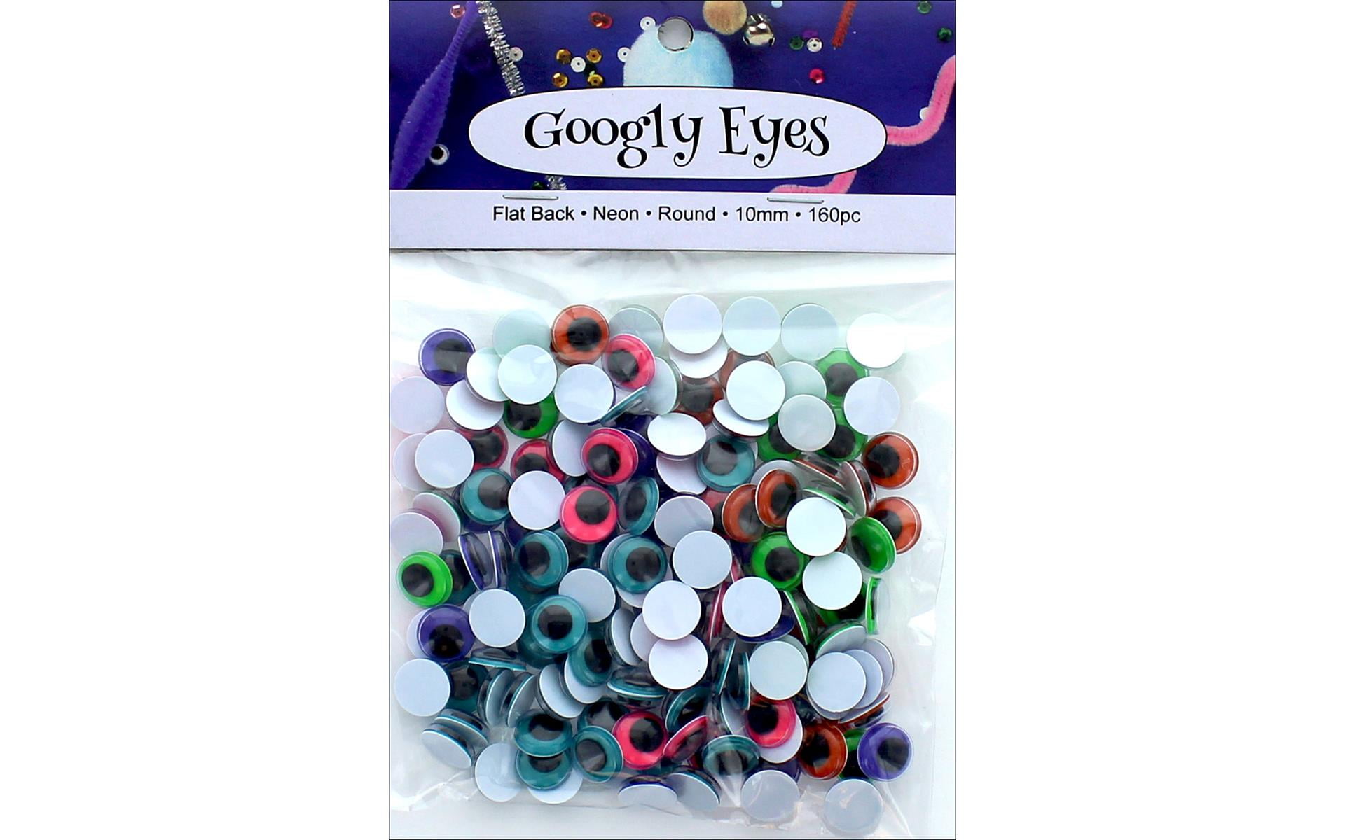 PA Ess Flat Back Eyes Round 10mm 160pc Neon (6 packs)