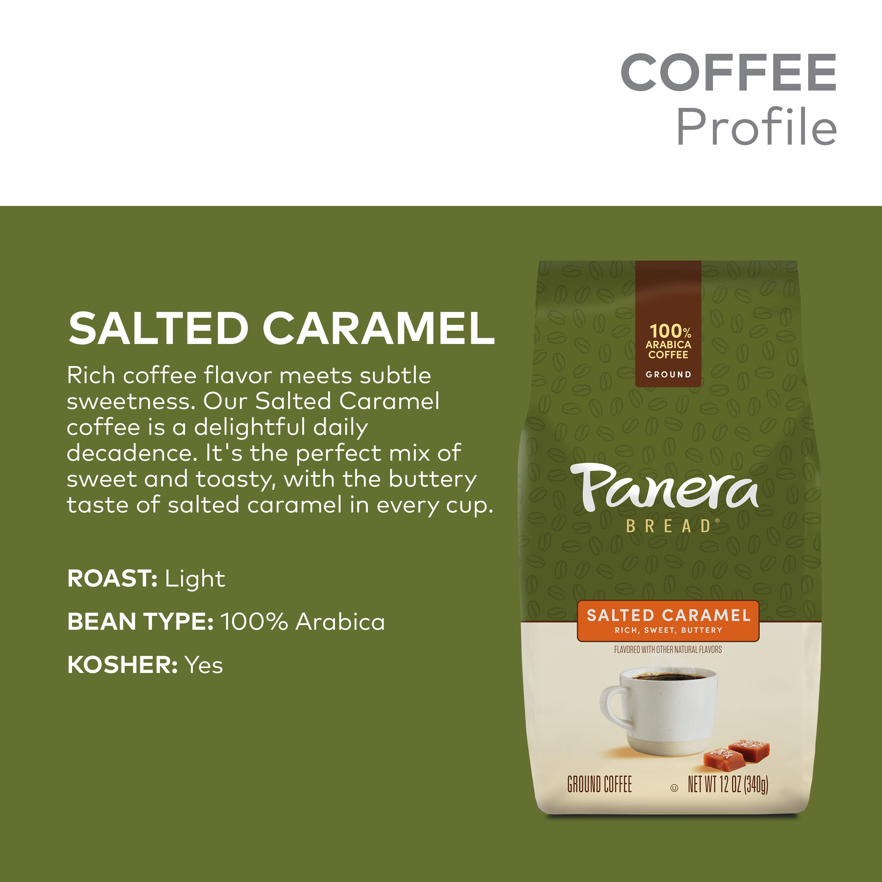 There’s a lot of guilty pleasures out there. But this coffee isn’t one of them. Panera® Salted Caramel is coffee with the buttery taste of salted caramel. So you treat yourself to a delightful daily decadence with the just-right balance of sweetness and rich coffee flavor that you deserve. At Panera®, we think coffee should taste good, smell good, feel good. It should be clean – just like our food. That’s why every day in our cafes we brew from 100% Arabica beans, roasted by people who know how to make great coffee. And we think you deserve all those great tastes, smells, and feels where you are, too. That’s why we made it easy to enjoy the taste of all your favorite Panera® coffee varieties at the touch of a button – all from the comfort of home. Every bag of Panera® ground coffee is filled with expertly sourced coffee, perfectly roast and ground so you can enjoy a delicious, full-flavored cup every time you brew. Enjoy a carafe with the Keurig® K-Duo® series of coffee makers, or brew a single cup just for you using any Keurig® K-Cup® pod single-serve coffee maker and the Keurig® My K-Cup® Universal Reusable Coffee Filter (sold separately). Certified Union Orthodox Kosher.