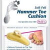 Hammer Toe Cushion eases pressure on toe tips as it comforts and supports bent-under toes. This soft, contoured pad also relieves forefoot pain while helping prevent blisters and corns. Adjustable toe loop holds cushion securely in place. Soft, durable top cover.