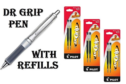 Pilot Dr. Grip Neon Retractable Ballpoint Pen – Pen Point Size: 1mm – Ink Color: Black – Barrel Color: Black With Refills