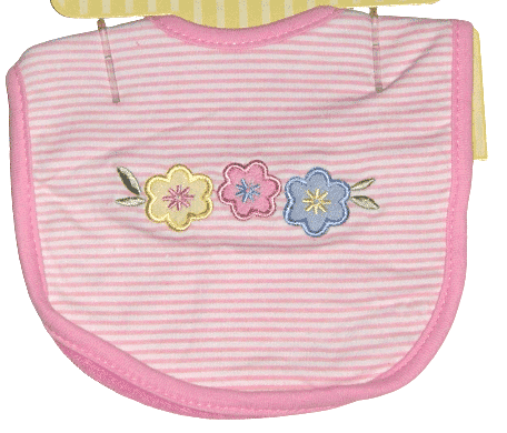 Pink and White Striped Embroidered Floral Baby Bib