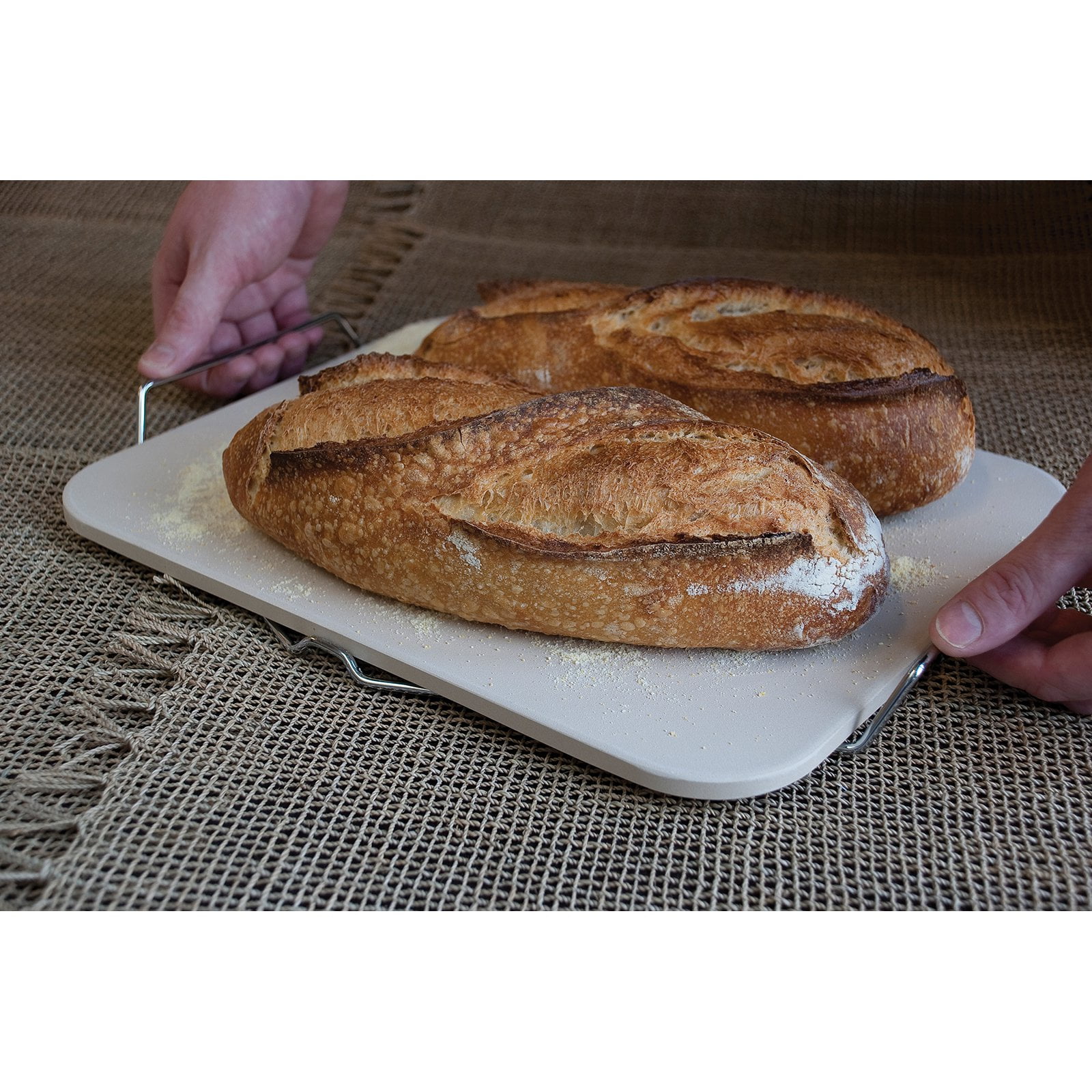 Pizzacraft Rectangle Pizza Stone and Baking Stone with Wire Frame for Oven, Grill or BBQ, PC0002