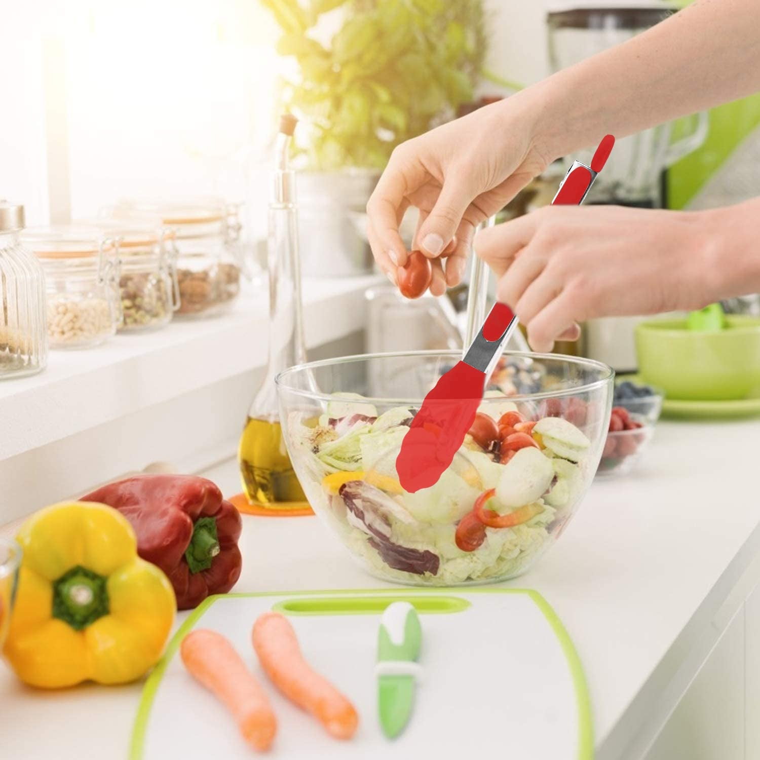 - Our silicone kitchen tongs are ergonomically designed for greater comfort where your thumb can rest for ease of handling and provide maximum grip. The upgraded concave stainless-steel handle edge can prevent possible injuries when holding the handle.