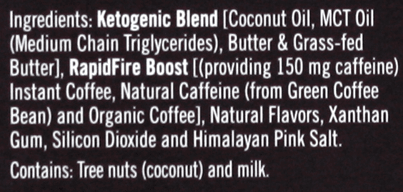 - INCREASE ENERGY FOR MORNINGS OR ANY TIME OF DAY. Rapid Fire Ketogenic Coffee provides 150 mg of natural caffeine to rev up your motor and keep you moving – either first thing in the morning or any time you need a lift!