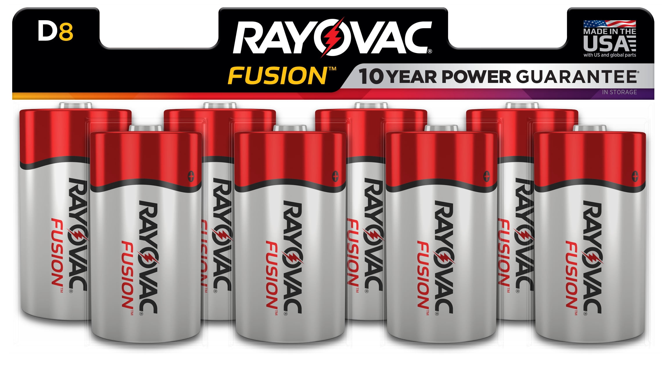 Rayovac Fusion D Batteries (8 Pack), Alkaline D Cell Batteries