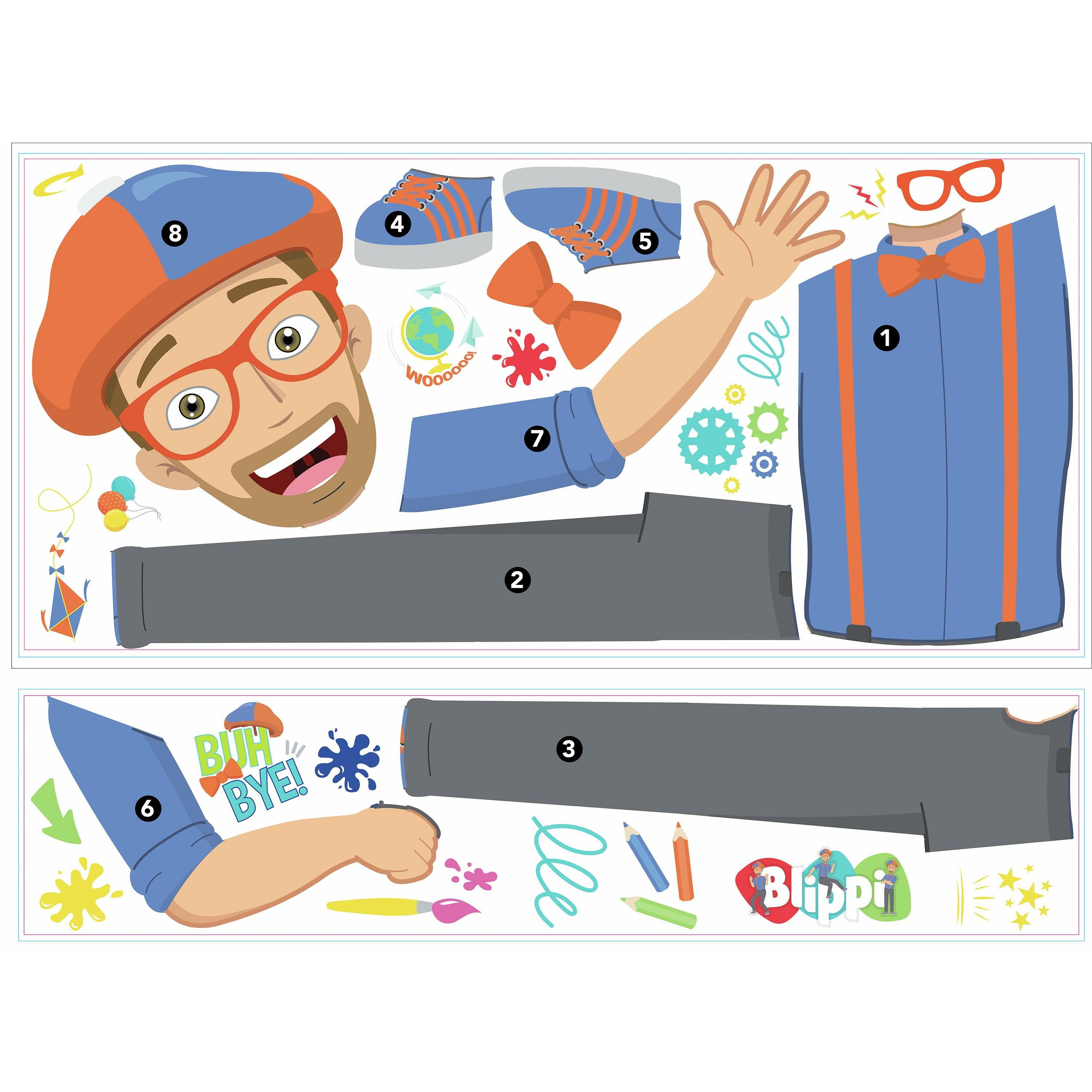 Add favorite characters to your space with Blippi Peel and Stick Giant Wall Decals by RoomMates. This wall sticker set is a fun and creative way to transform any room in seconds. To apply, simply peel and stick decals to any smooth, flat surface. Remove, reposition and reuse as often as needed. Created with high quality vinyl that’s made to last, walls stay completely safe, and sticky residue is never left behind. It’s fast, fun and affordable wall decor at it’s best.