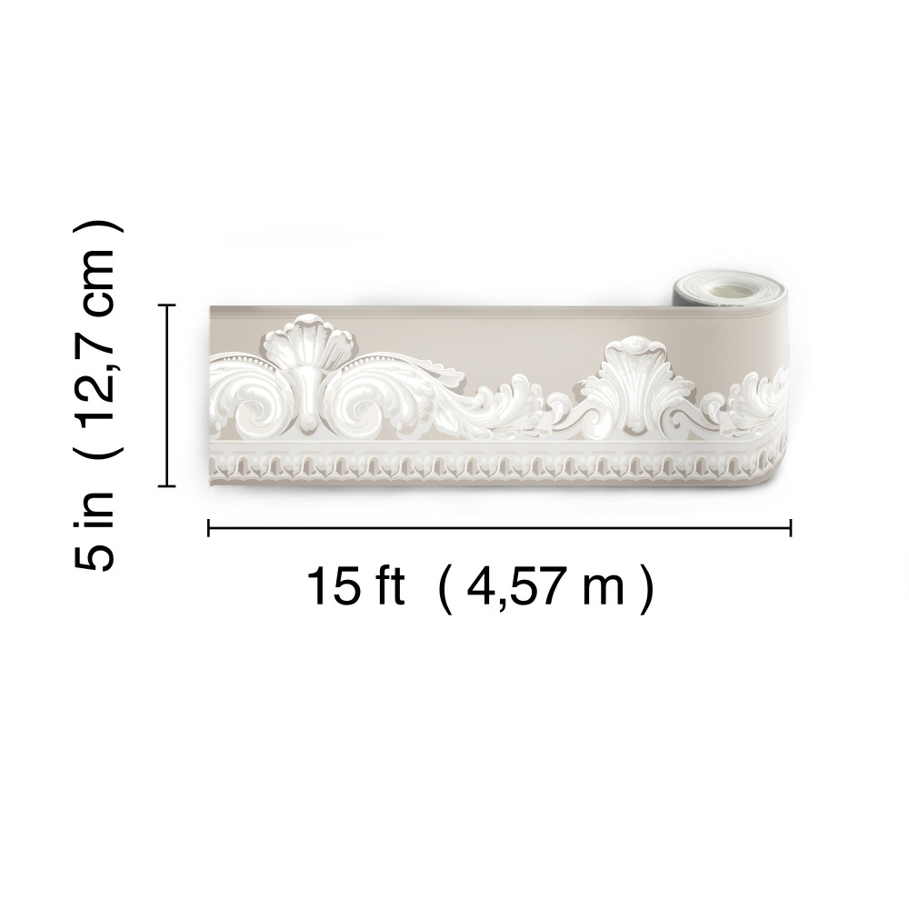 White Architectural Scroll Peel and Stick Border: