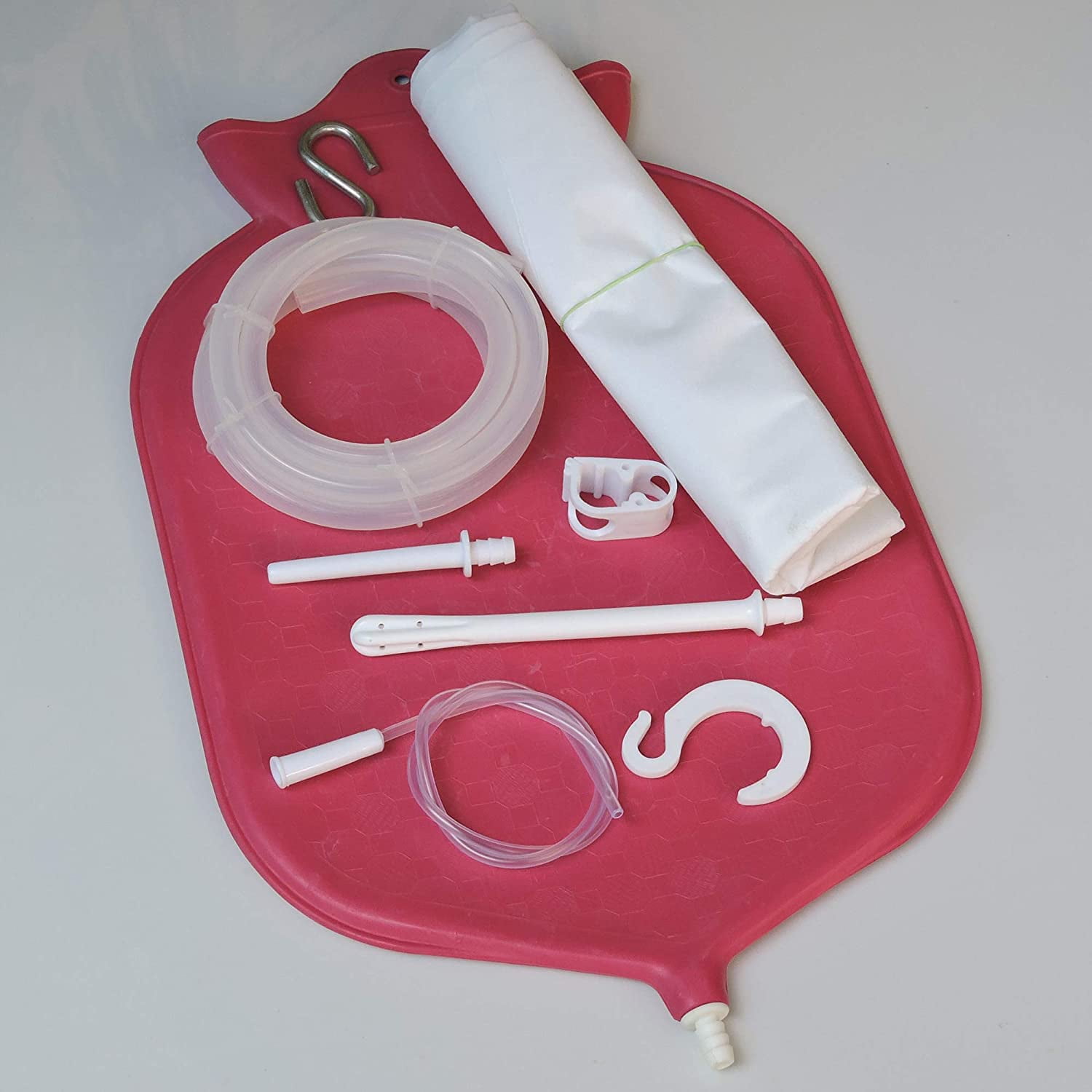 - High quality components- The kit includes a 4-quart rubber enema bag, 1.5 meter hose, a colon tip, a pinch clamp, a straight-in nozzle, a douche nozzle, a PVC hook, a stainless steel hook, an instruction booklet. All the components are made of high-quality, medical grade material.