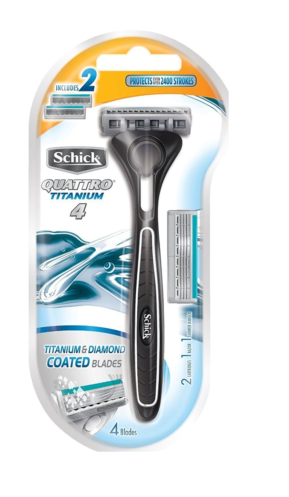 Schick Quattro Razor & Cartridges, Titanium Coated Blades, 1 Razor, 2 Cartridges + LA Cross Manicure 74858
