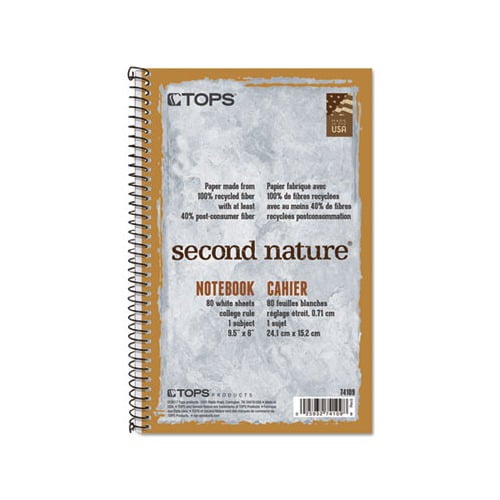Second Nature Single Subject Wirebound Notebooks 1 Subject, Medium/College Rule, Light Blue Cover, 9.5 x 6, 80 Sheets