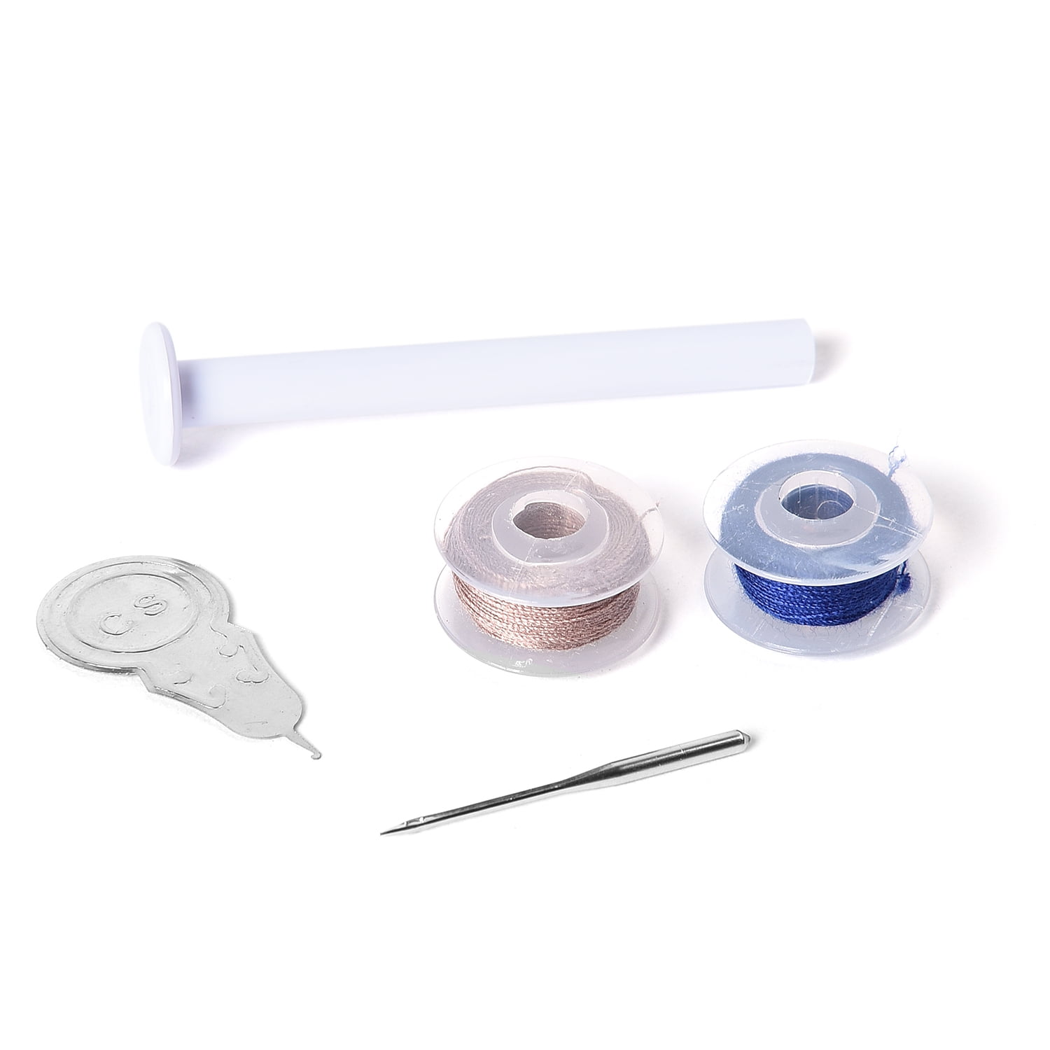 - LEARN ABOUT THE DYNAMICS OF MACHINE: The sewing machine is equipped with 4 set thread points. It also features a battery compartment, adapter input, and extension spindle. The machine comes with two bobbins and one thread which help in stitching