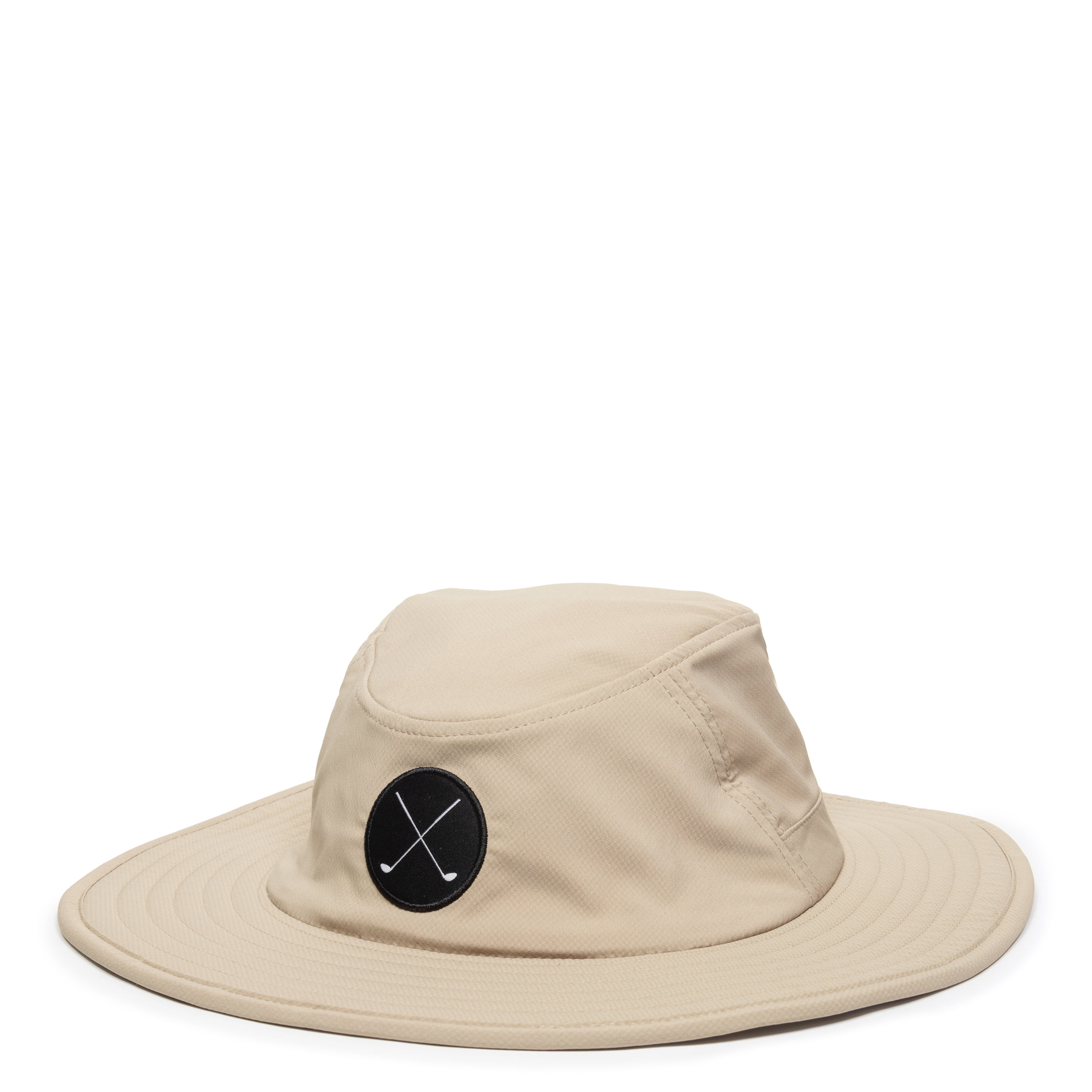 This Golf Hat is the perfect accessory for your next round of 18 holes. The wide-brimmed boonie shape provides optimum protection from the sun’s harmful rays during a long day on the green. The crossed golf club patch pops against the khaki background. This lightweight sun hat is breathable with high-tech performance features like a floatable neoprene brim.