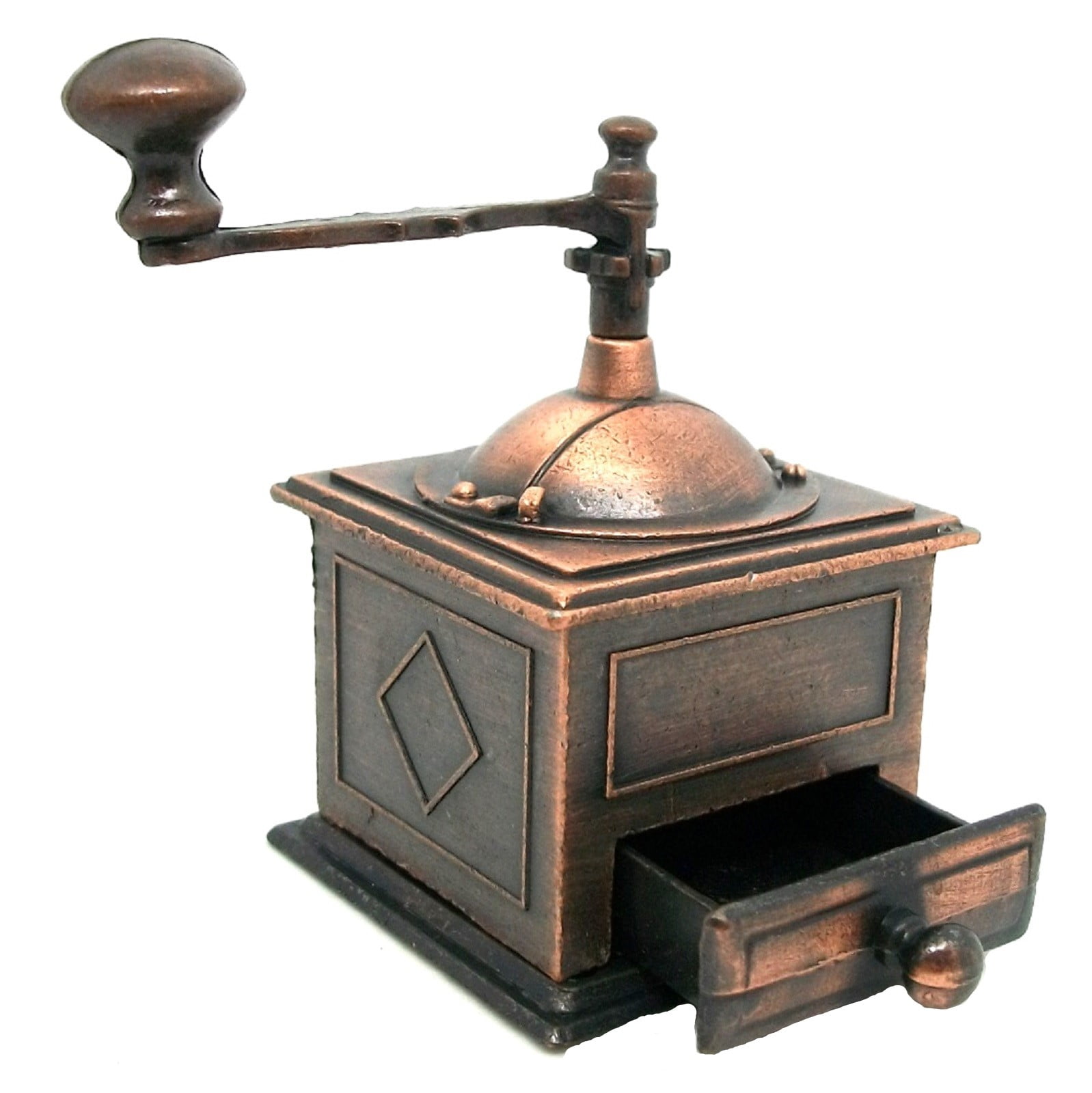 Pencil Sharpener Measures: 3.00 inches tall x 2.50 inches wideSmall Coffee Grinder Die Cast Metal Collectible Pencil Sharpener