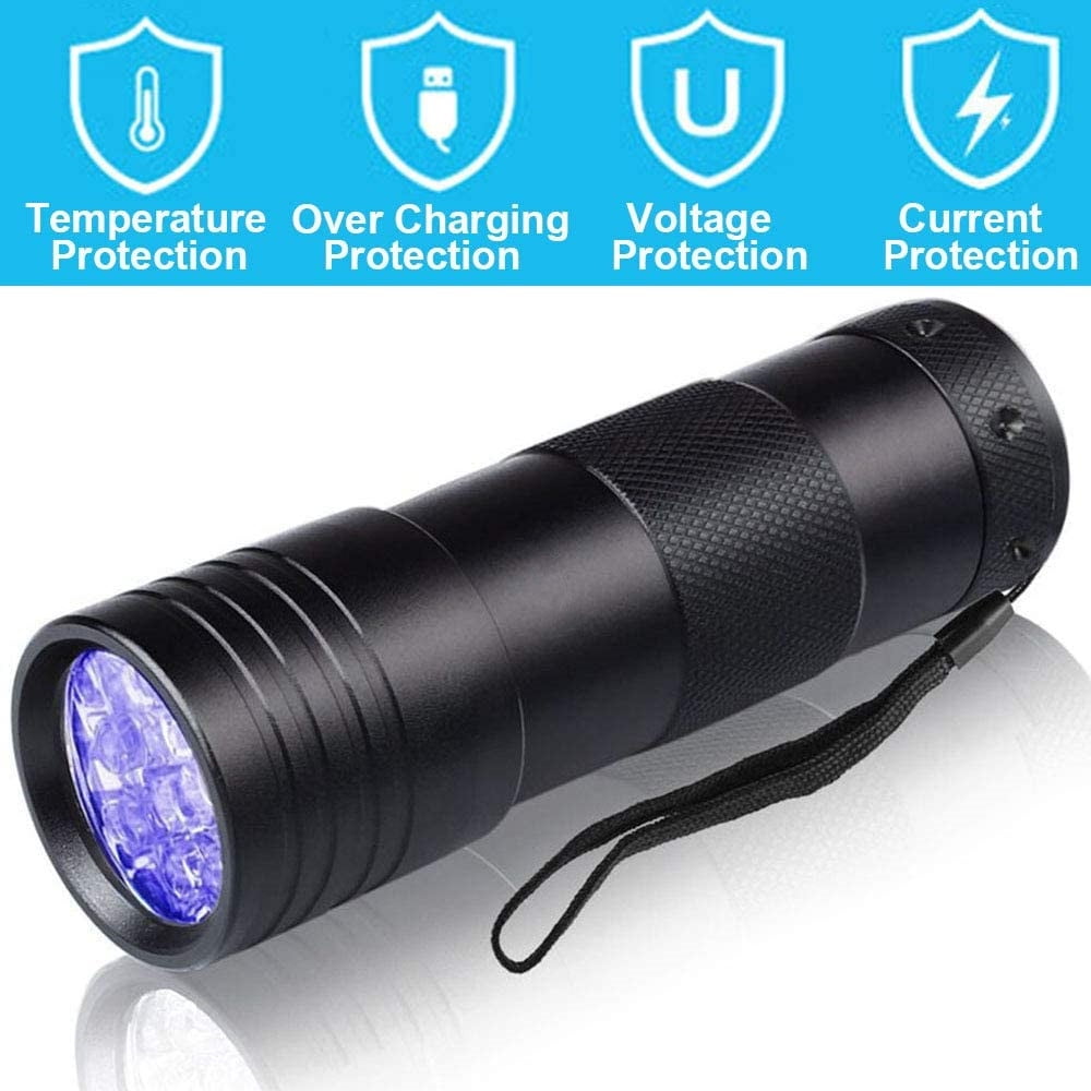 Small UV Blacklight Flashlight, Portable Black Light 395nm 12 Led, Ultraviolet Light Detector for Invisible Ink Pens, Dog Cat Pet Urine Stain, Batteries Not Included