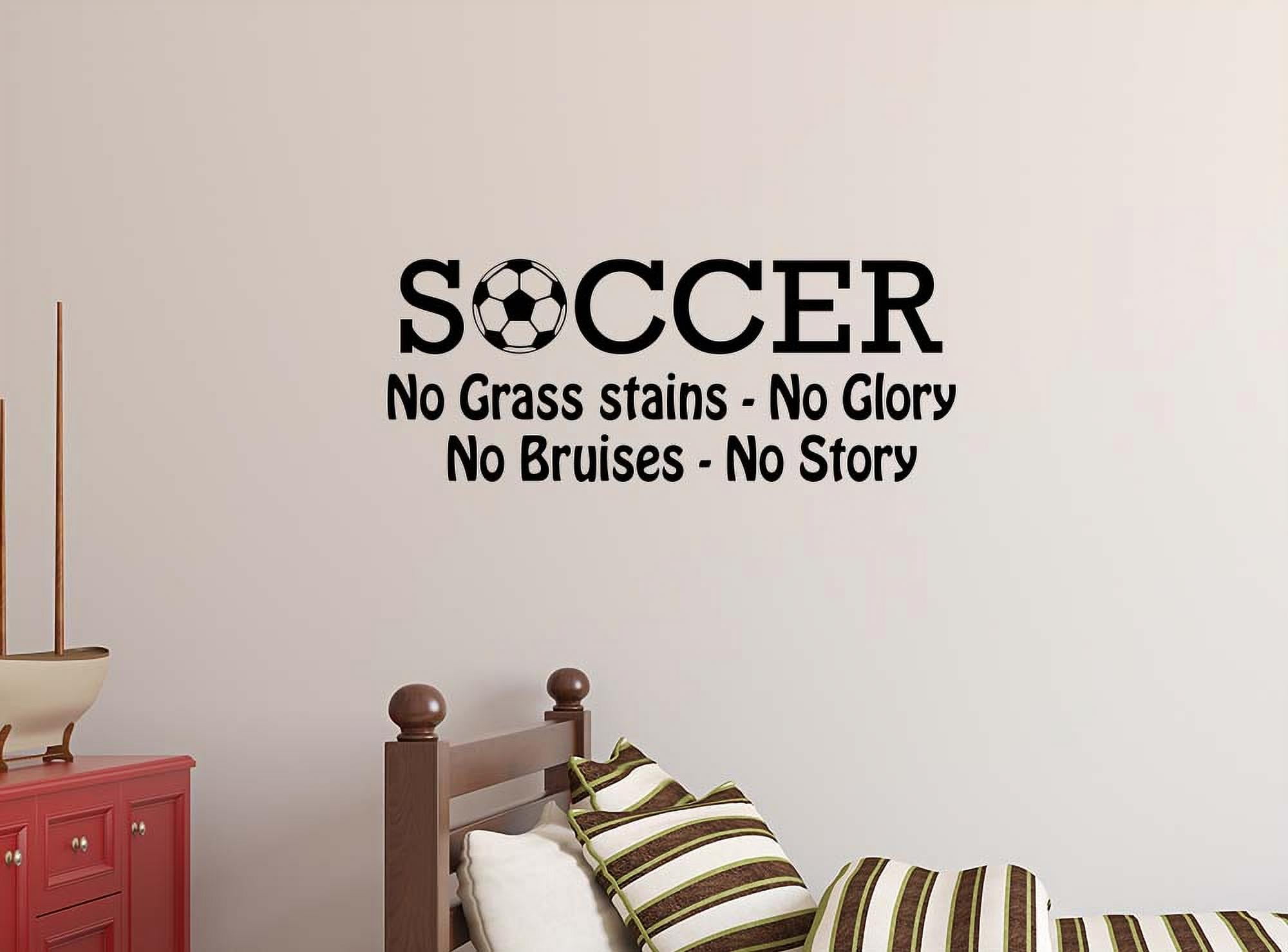 Soccer no grass stains no glory no burises no story 23 x 9 Vinyl wall quote decal futbol sticker Sports Team Calligraphy Art Decor Motivational Inspirational lettering Ronaldo Messi soccer