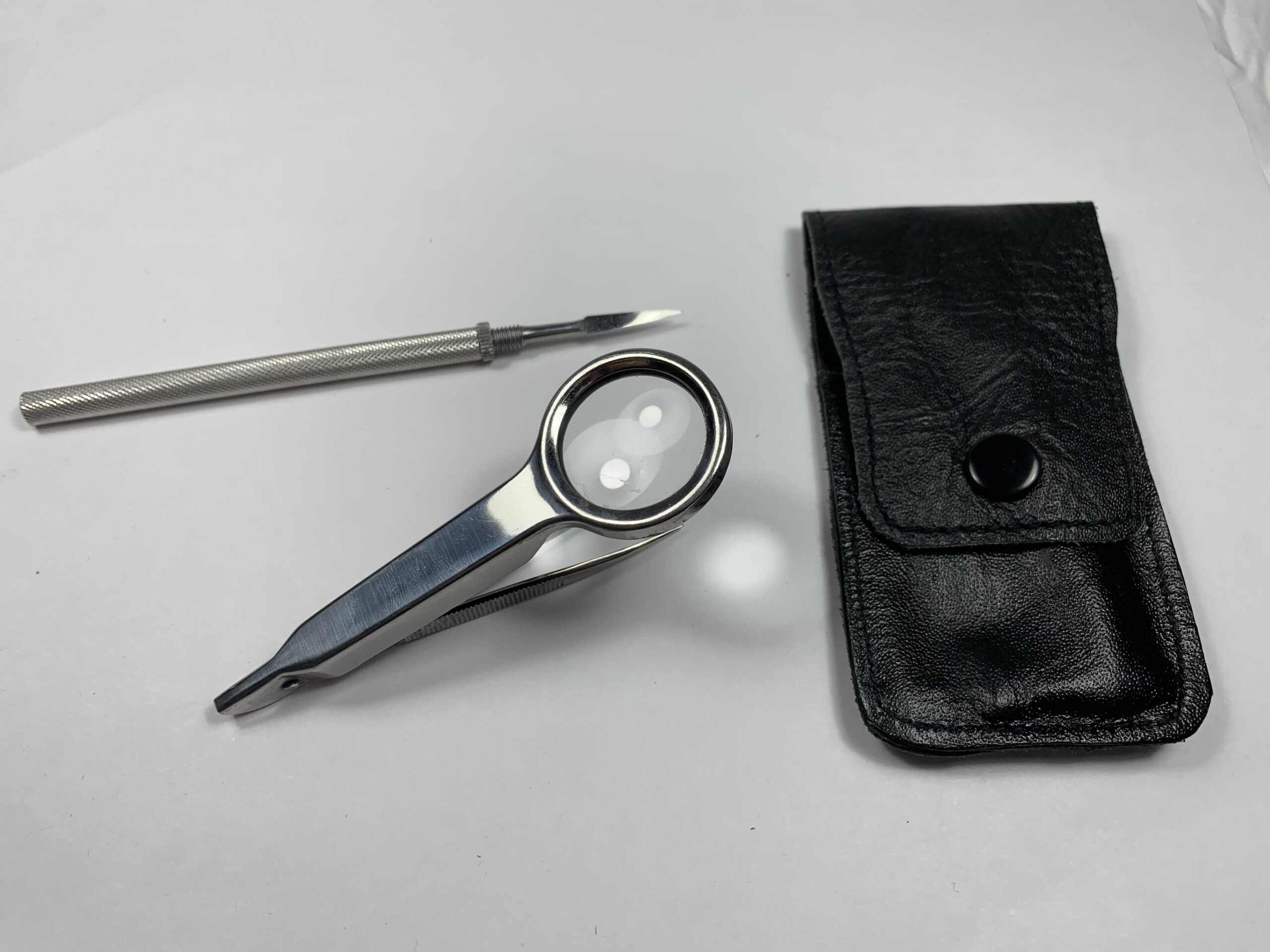 Surgical stainless steel set of 2 including magnify tweezers, probe and leather caseSplinter Removal Kit (2)